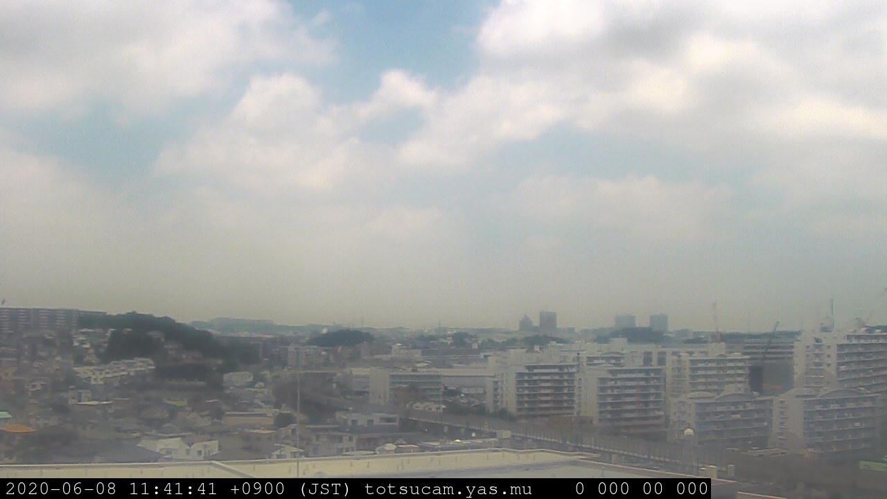 横浜市戸塚駅周辺から 東戸塚方面(北北東)を望む展望カメラの映像です。 左は現在の映像です。 下に並んでいるのは、 7日間に亘る日の出どき、昼間、夕暮れどきの写真(サムネイル)です。 それぞれ、日の出15分前、南中時、日没20分後の写真となっています。 各写真の下にはmpeg形式の動画へのリンクがあります。 それぞれ、日の出、南中、日没の前後1時間の画像です。 右欄にはその日24時間の動画へのリンクがあります。 この7日間以外は日付が一覧表示されています。 日付部分をクリックすると、 その日付から7日分が展開されて表示されます。