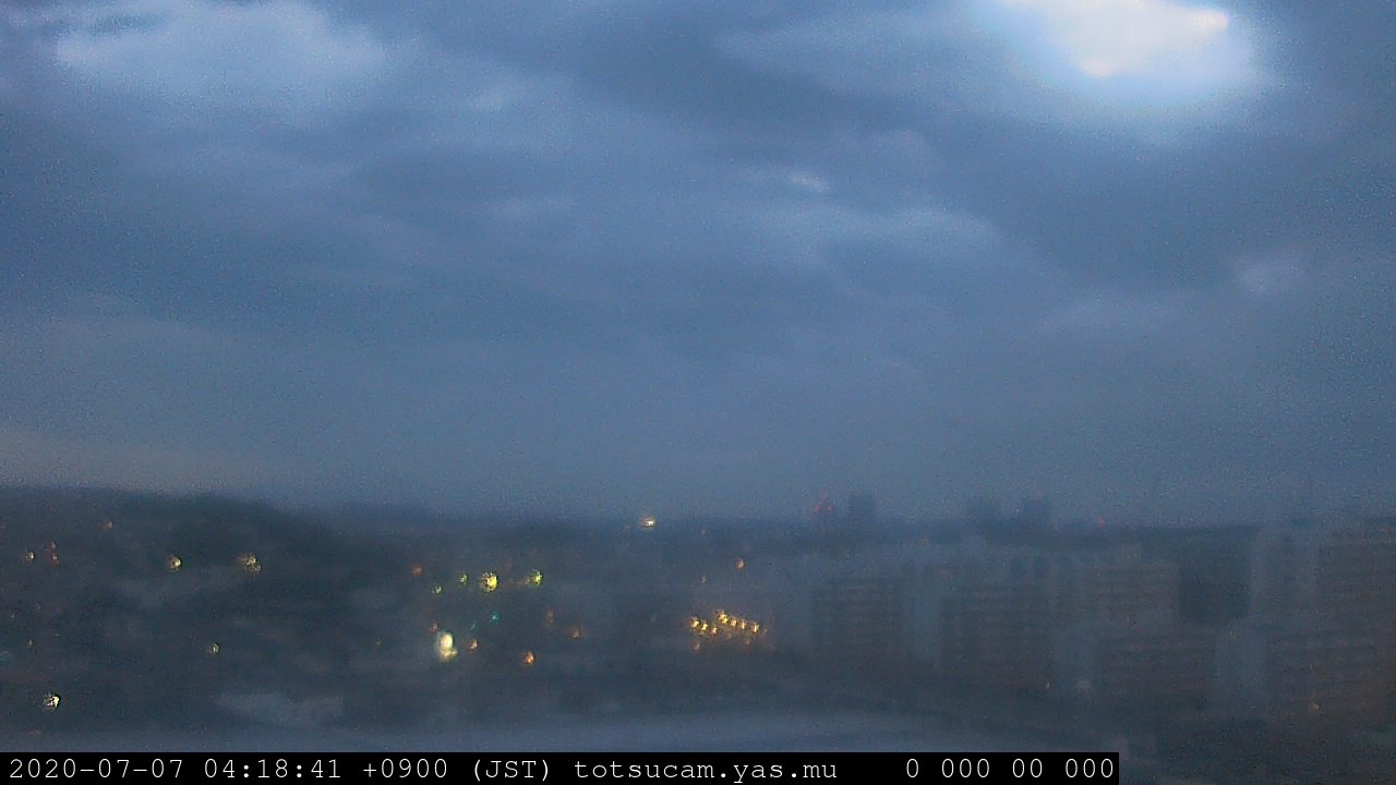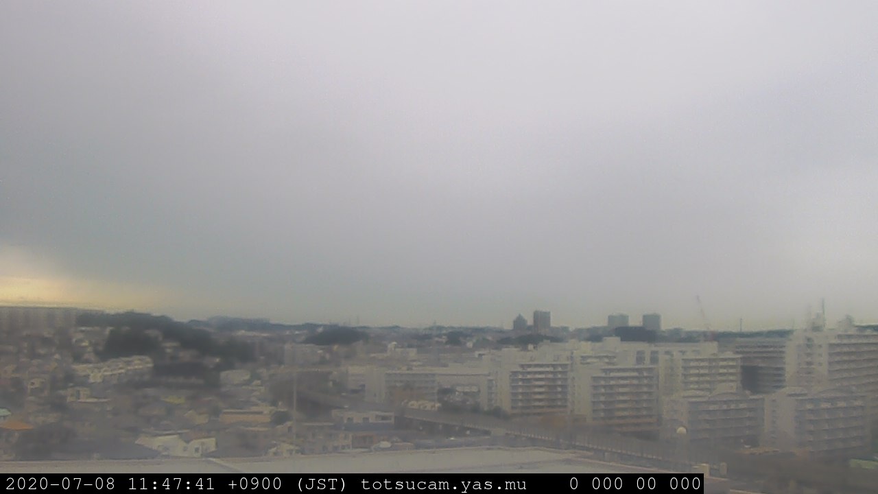 横浜市戸塚駅周辺から 東戸塚方面(北北東)を望む展望カメラの映像です。 左は現在の映像です。 下に並んでいるのは、 7日間に亘る日の出どき、昼間、夕暮れどきの写真(サムネイル)です。 それぞれ、日の出15分前、南中時、日没20分後の写真となっています。 各写真の下にはmpeg形式の動画へのリンクがあります。 それぞれ、日の出、南中、日没の前後1時間の画像です。 右欄にはその日24時間の動画へのリンクがあります。 この7日間以外は日付が一覧表示されています。 日付部分をクリックすると、 その日付から7日分が展開されて表示されます。
