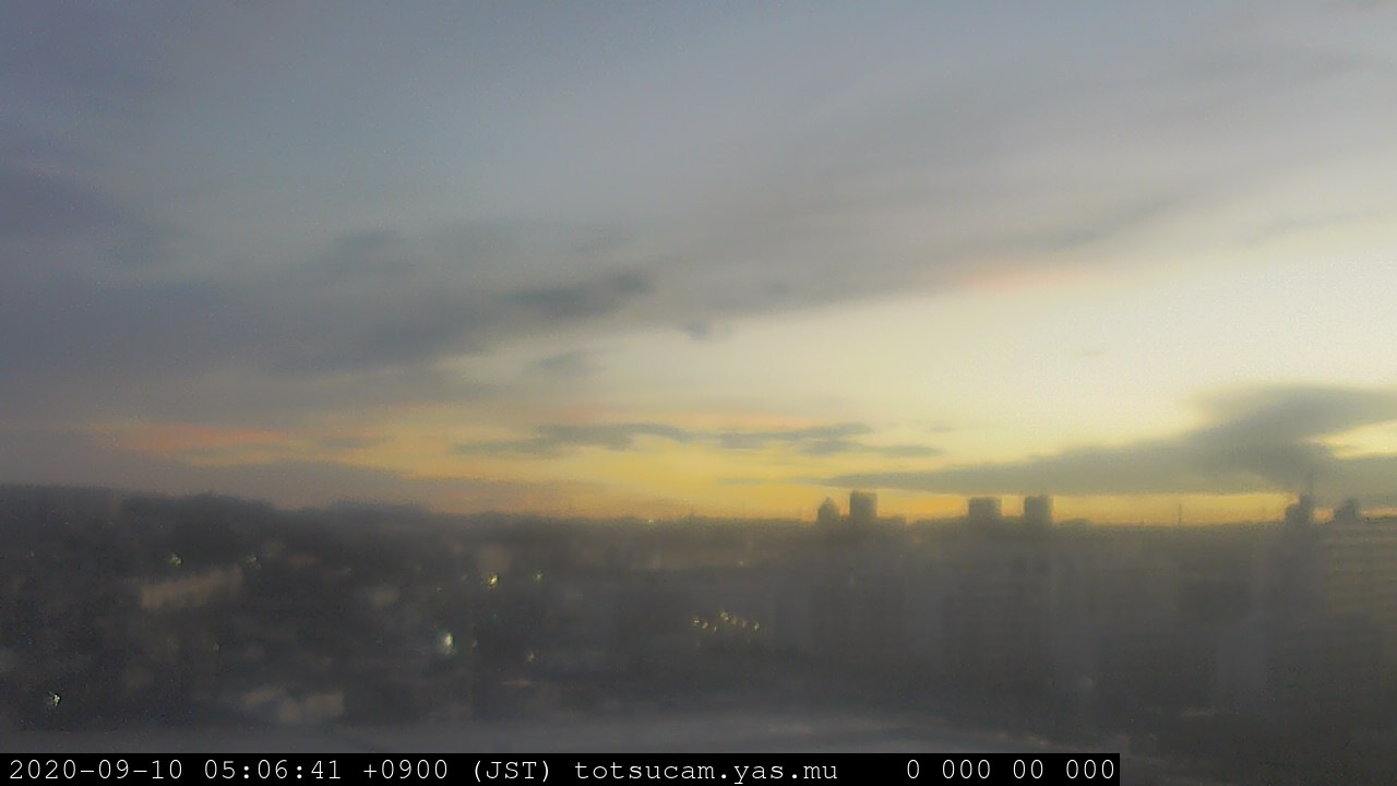 横浜市戸塚駅周辺から 東戸塚方面(北北東)を望む展望カメラの映像です。 左は現在の映像です。 下に並んでいるのは、 7日間に亘る日の出どき、昼間、夕暮れどきの写真(サムネイル)です。 それぞれ、日の出15分前、南中時、日没20分後の写真となっています。 各写真の下にはmpeg形式の動画へのリンクがあります。 それぞれ、日の出、南中、日没の前後1時間の画像です。 右欄にはその日24時間の動画へのリンクがあります。 この7日間以外は日付が一覧表示されています。 日付部分をクリックすると、 その日付から7日分が展開されて表示されます。