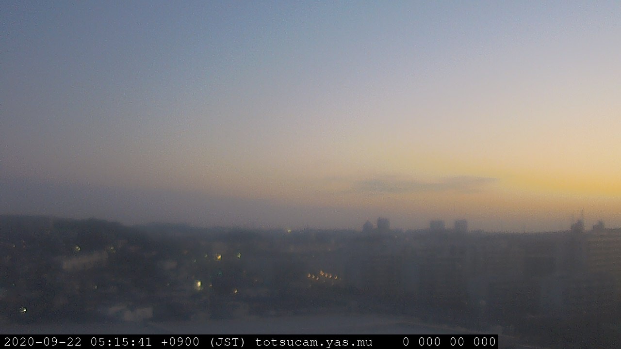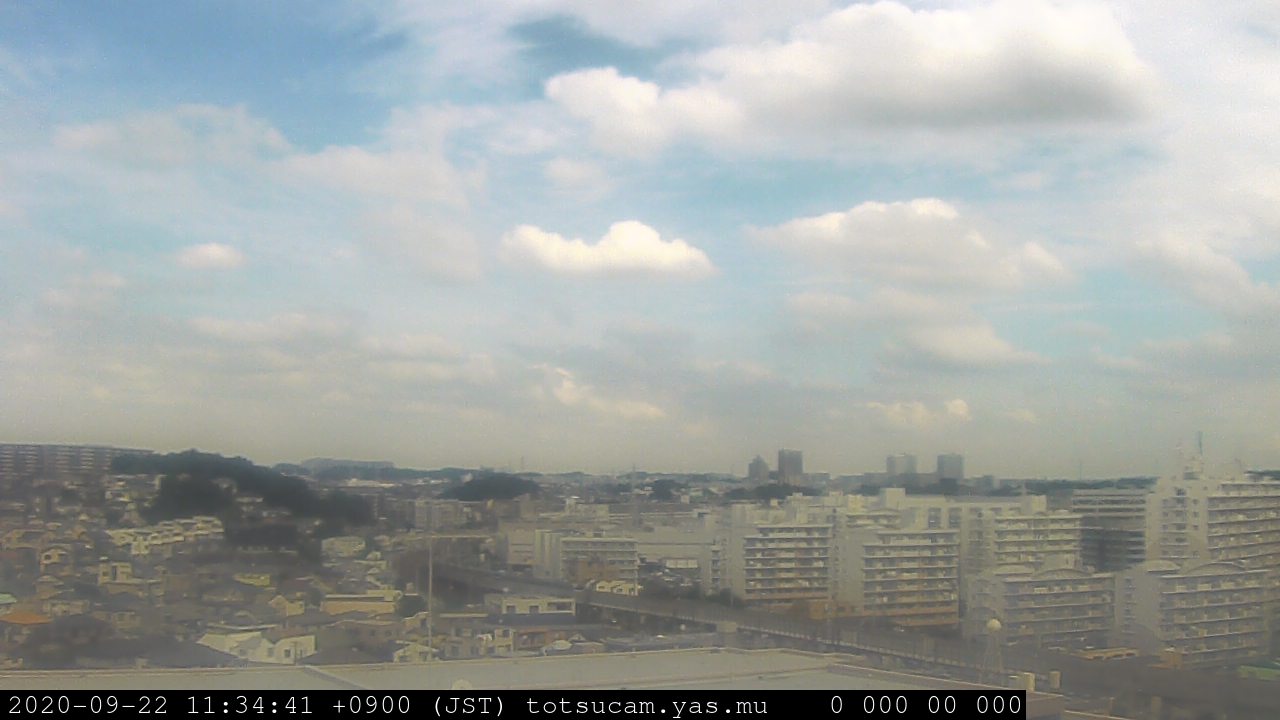 横浜市戸塚駅周辺から 東戸塚方面(北北東)を望む展望カメラの映像です。 左は現在の映像です。 下に並んでいるのは、 7日間に亘る日の出どき、昼間、夕暮れどきの写真(サムネイル)です。 それぞれ、日の出15分前、南中時、日没20分後の写真となっています。 各写真の下にはmpeg形式の動画へのリンクがあります。 それぞれ、日の出、南中、日没の前後1時間の画像です。 右欄にはその日24時間の動画へのリンクがあります。 この7日間以外は日付が一覧表示されています。 日付部分をクリックすると、 その日付から7日分が展開されて表示されます。