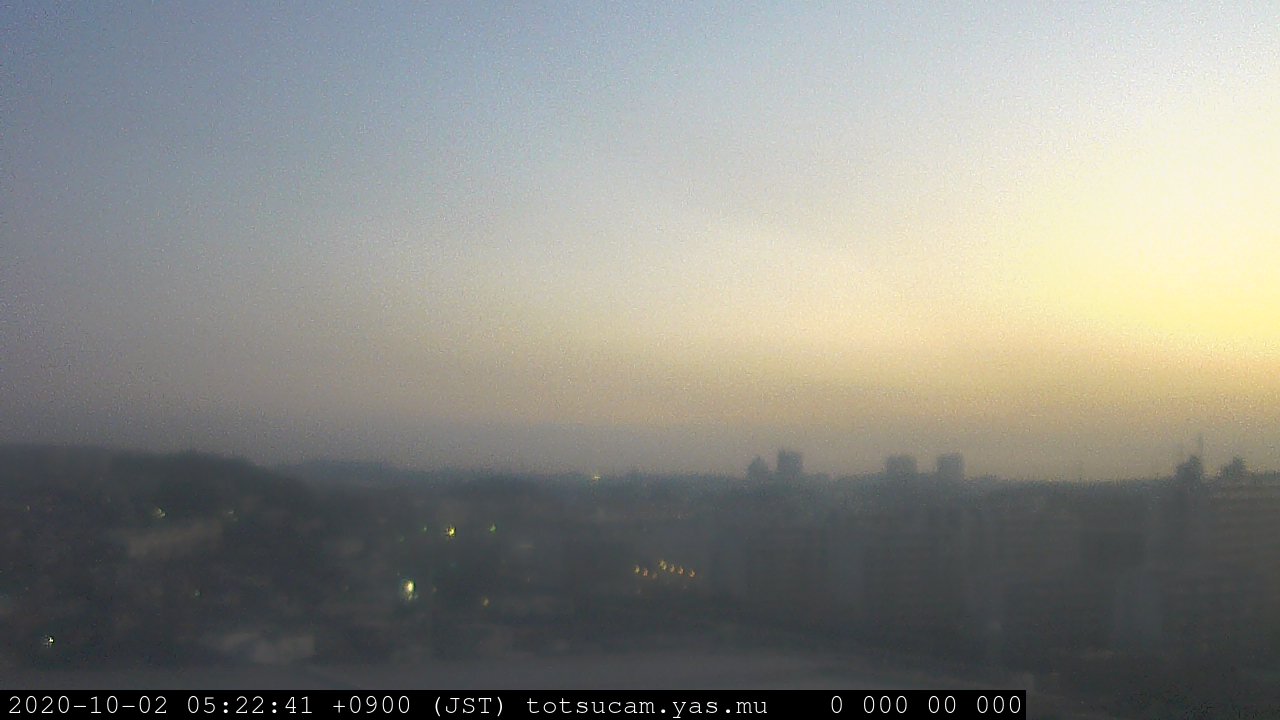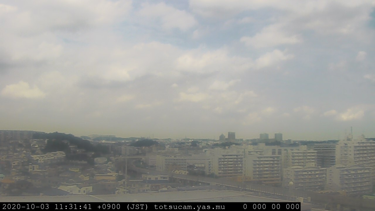 横浜市戸塚駅周辺から 東戸塚方面(北北東)を望む展望カメラの映像です。 左は現在の映像です。 下に並んでいるのは、 7日間に亘る日の出どき、昼間、夕暮れどきの写真(サムネイル)です。 それぞれ、日の出15分前、南中時、日没20分後の写真となっています。 各写真の下にはmpeg形式の動画へのリンクがあります。 それぞれ、日の出、南中、日没の前後1時間の画像です。 右欄にはその日24時間の動画へのリンクがあります。 この7日間以外は日付が一覧表示されています。 日付部分をクリックすると、 その日付から7日分が展開されて表示されます。