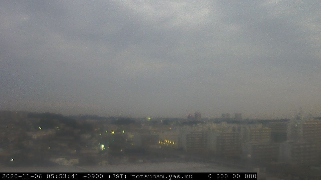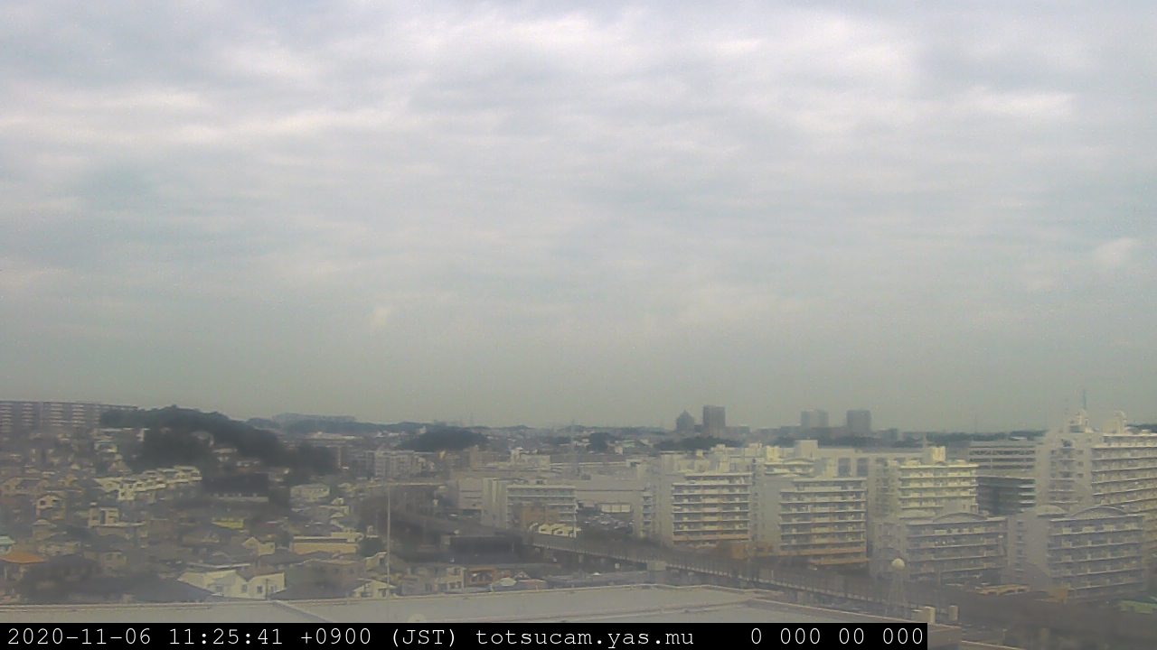 横浜市戸塚駅周辺から 東戸塚方面(北北東)を望む展望カメラの映像です。 左は現在の映像です。 下に並んでいるのは、 7日間に亘る日の出どき、昼間、夕暮れどきの写真(サムネイル)です。 それぞれ、日の出15分前、南中時、日没20分後の写真となっています。 各写真の下にはmpeg形式の動画へのリンクがあります。 それぞれ、日の出、南中、日没の前後1時間の画像です。 右欄にはその日24時間の動画へのリンクがあります。 この7日間以外は日付が一覧表示されています。 日付部分をクリックすると、 その日付から7日分が展開されて表示されます。