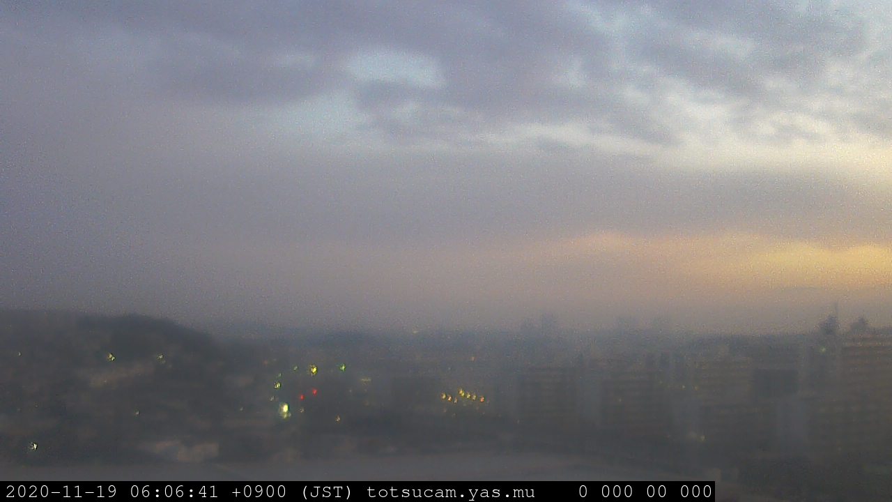 横浜市戸塚駅周辺から 東戸塚方面(北北東)を望む展望カメラの映像です。 左は現在の映像です。 下に並んでいるのは、 7日間に亘る日の出どき、昼間、夕暮れどきの写真(サムネイル)です。 それぞれ、日の出15分前、南中時、日没20分後の写真となっています。 各写真の下にはmpeg形式の動画へのリンクがあります。 それぞれ、日の出、南中、日没の前後1時間の画像です。 右欄にはその日24時間の動画へのリンクがあります。 この7日間以外は日付が一覧表示されています。 日付部分をクリックすると、 その日付から7日分が展開されて表示されます。