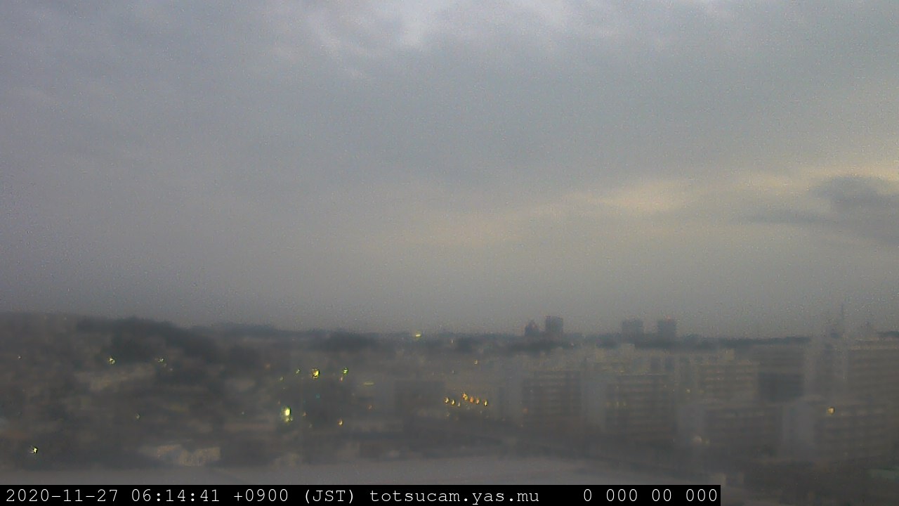 横浜市戸塚駅周辺から 東戸塚方面(北北東)を望む展望カメラの映像です。 左は現在の映像です。 下に並んでいるのは、 7日間に亘る日の出どき、昼間、夕暮れどきの写真(サムネイル)です。 それぞれ、日の出15分前、南中時、日没20分後の写真となっています。 各写真の下にはmpeg形式の動画へのリンクがあります。 それぞれ、日の出、南中、日没の前後1時間の画像です。 右欄にはその日24時間の動画へのリンクがあります。 この7日間以外は日付が一覧表示されています。 日付部分をクリックすると、 その日付から7日分が展開されて表示されます。