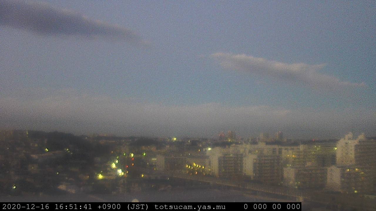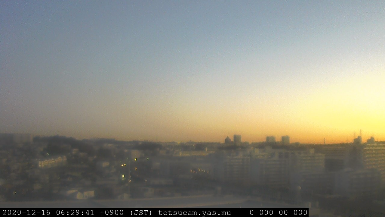 横浜市戸塚駅周辺から 東戸塚方面(北北東)を望む展望カメラの映像です。 左は現在の映像です。 下に並んでいるのは、 7日間に亘る日の出どき、昼間、夕暮れどきの写真(サムネイル)です。 それぞれ、日の出15分前、南中時、日没20分後の写真となっています。 各写真の下にはmpeg形式の動画へのリンクがあります。 それぞれ、日の出、南中、日没の前後1時間の画像です。 右欄にはその日24時間の動画へのリンクがあります。 この7日間以外は日付が一覧表示されています。 日付部分をクリックすると、 その日付から7日分が展開されて表示されます。