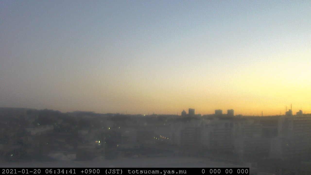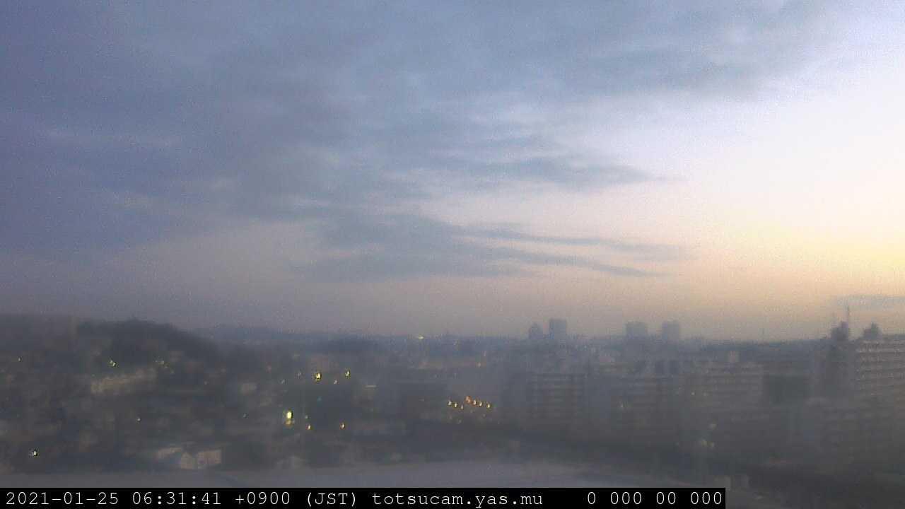 横浜市戸塚駅周辺から 東戸塚方面(北北東)を望む展望カメラの映像です。 左は現在の映像です。 下に並んでいるのは、 7日間に亘る日の出どき、昼間、夕暮れどきの写真(サムネイル)です。 それぞれ、日の出15分前、南中時、日没20分後の写真となっています。 各写真の下にはmpeg形式の動画へのリンクがあります。 それぞれ、日の出、南中、日没の前後1時間の画像です。 右欄にはその日24時間の動画へのリンクがあります。 この7日間以外は日付が一覧表示されています。 日付部分をクリックすると、 その日付から7日分が展開されて表示されます。