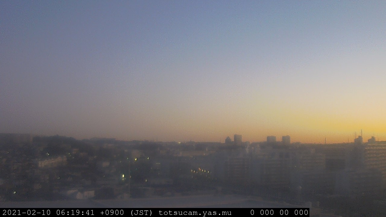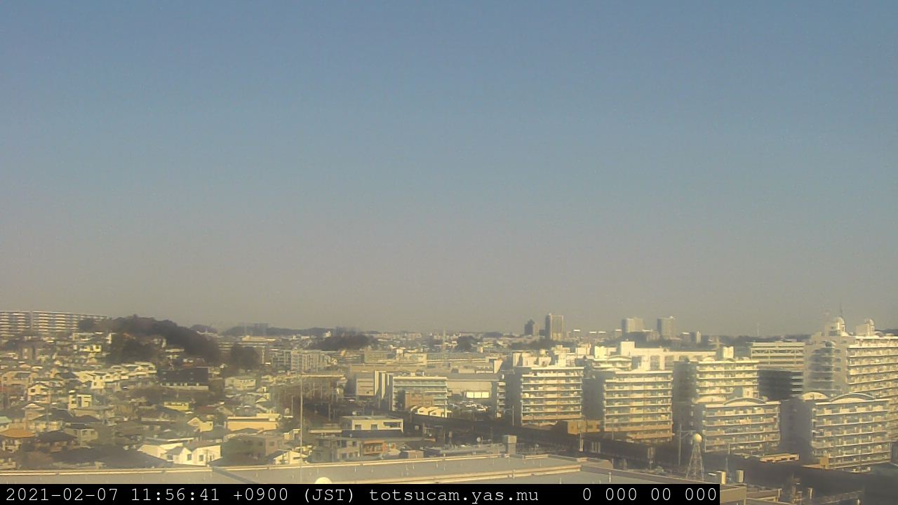 横浜市戸塚駅周辺から 東戸塚方面(北北東)を望む展望カメラの映像です。 左は現在の映像です。 下に並んでいるのは、 7日間に亘る日の出どき、昼間、夕暮れどきの写真(サムネイル)です。 それぞれ、日の出15分前、南中時、日没20分後の写真となっています。 各写真の下にはmpeg形式の動画へのリンクがあります。 それぞれ、日の出、南中、日没の前後1時間の画像です。 右欄にはその日24時間の動画へのリンクがあります。 この7日間以外は日付が一覧表示されています。 日付部分をクリックすると、 その日付から7日分が展開されて表示されます。