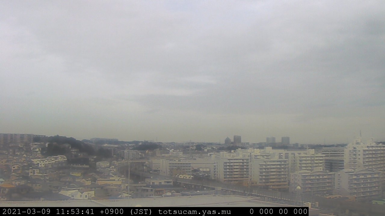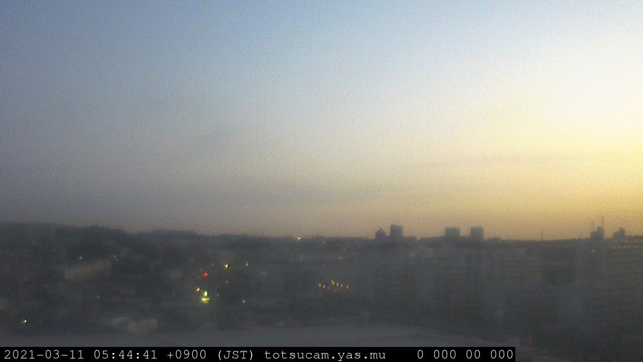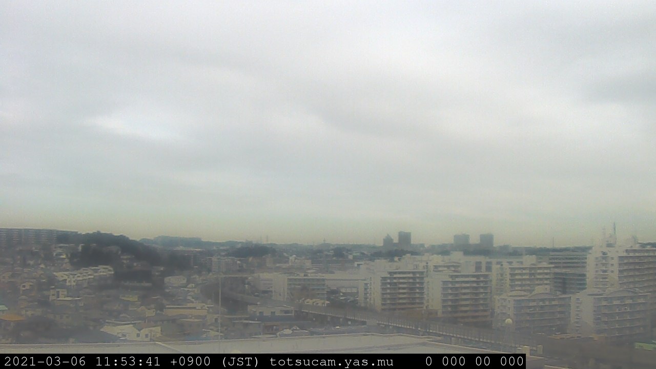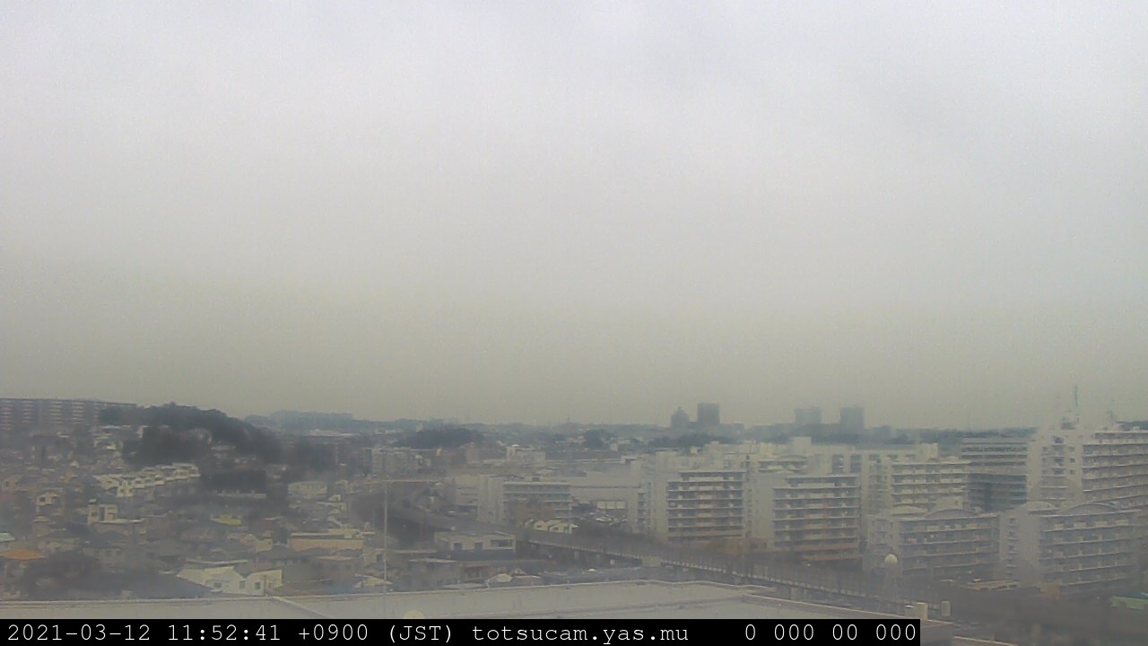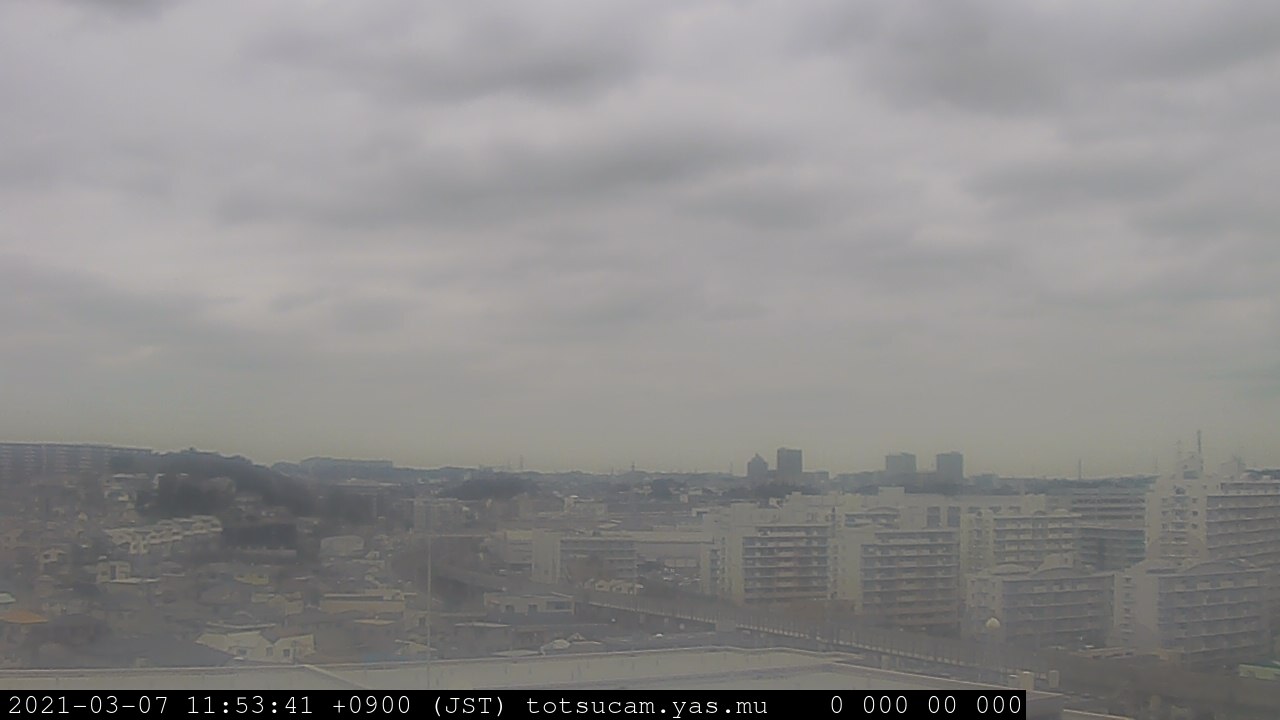 横浜市戸塚駅周辺から 東戸塚方面(北北東)を望む展望カメラの映像です。 左は現在の映像です。 下に並んでいるのは、 7日間に亘る日の出どき、昼間、夕暮れどきの写真(サムネイル)です。 それぞれ、日の出15分前、南中時、日没20分後の写真となっています。 各写真の下にはmpeg形式の動画へのリンクがあります。 それぞれ、日の出、南中、日没の前後1時間の画像です。 右欄にはその日24時間の動画へのリンクがあります。 この7日間以外は日付が一覧表示されています。 日付部分をクリックすると、 その日付から7日分が展開されて表示されます。