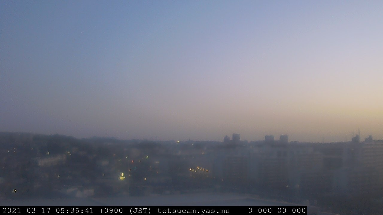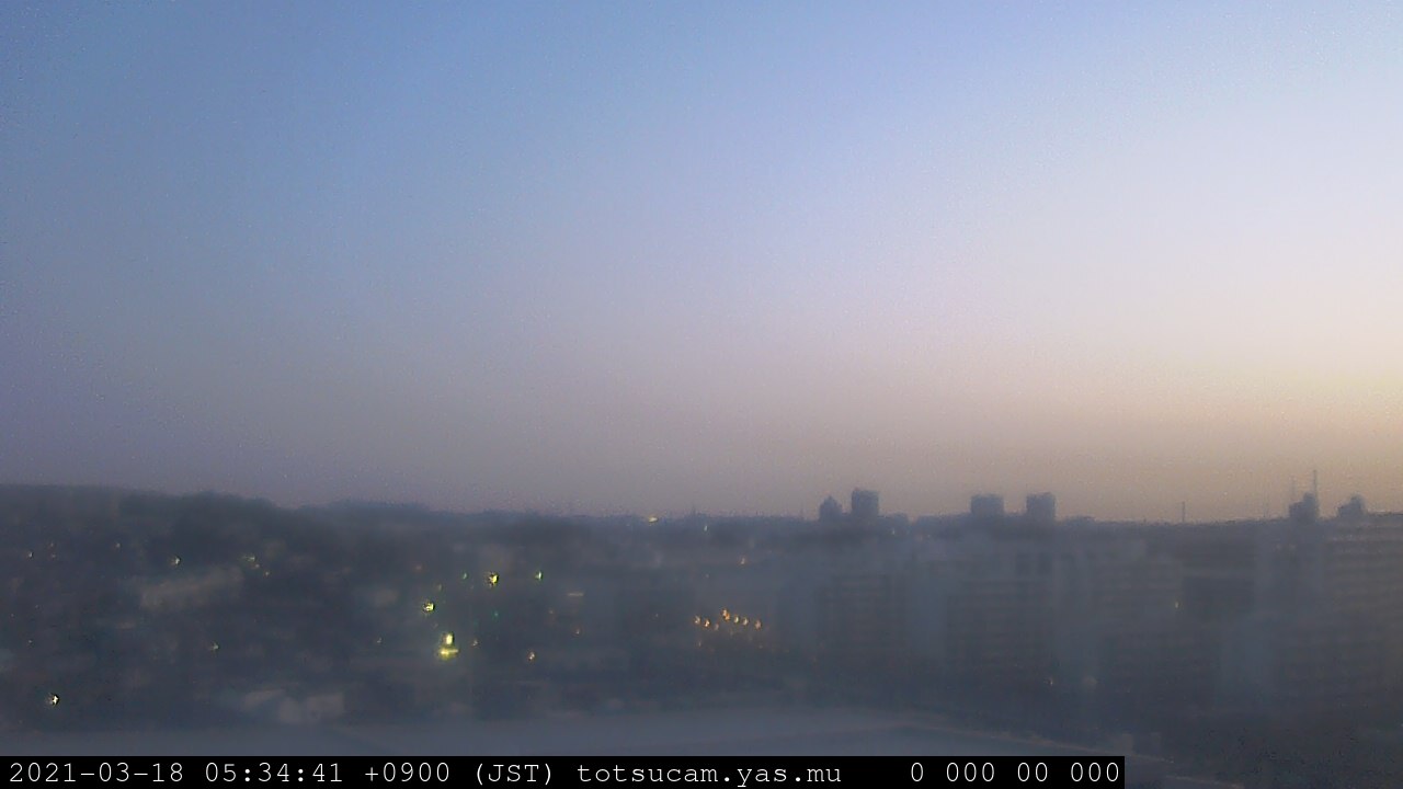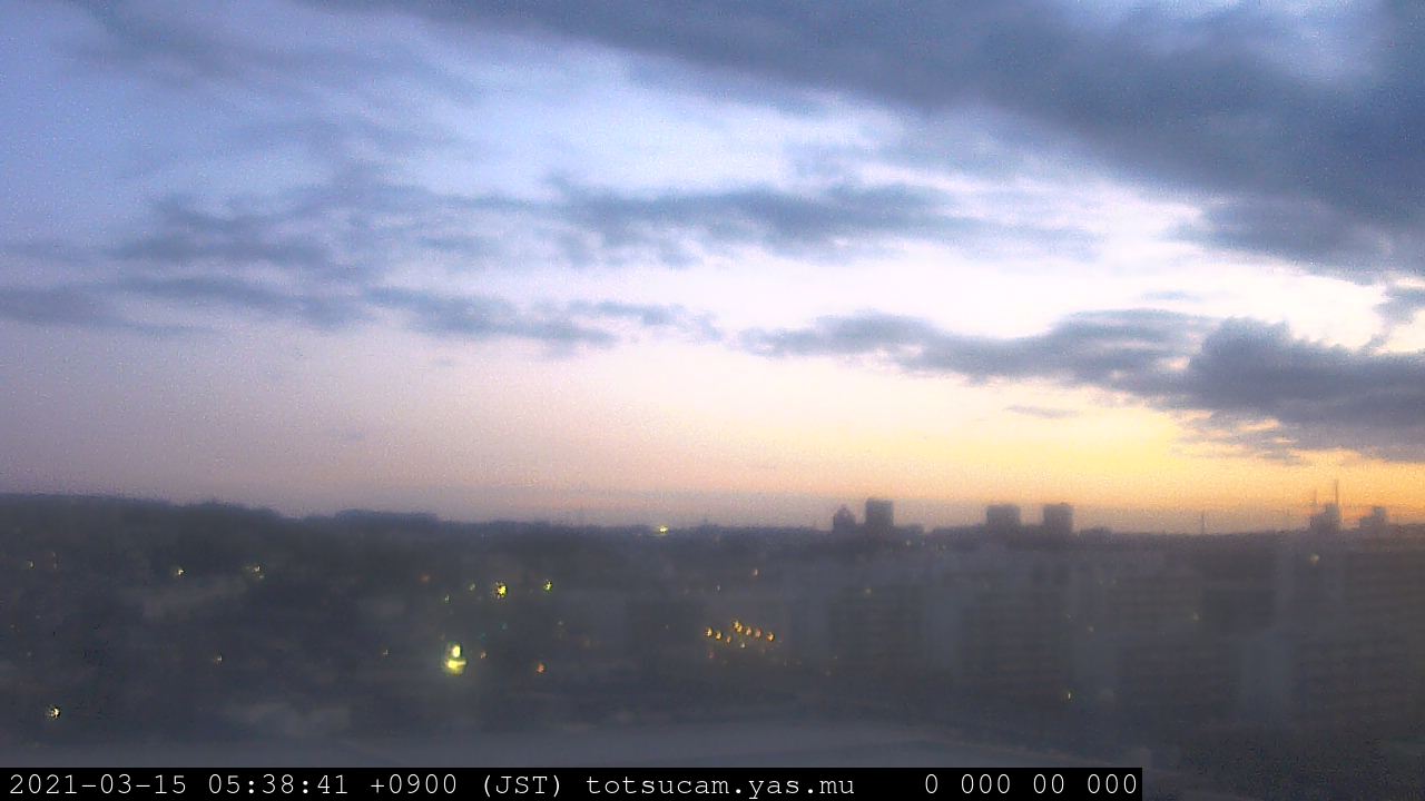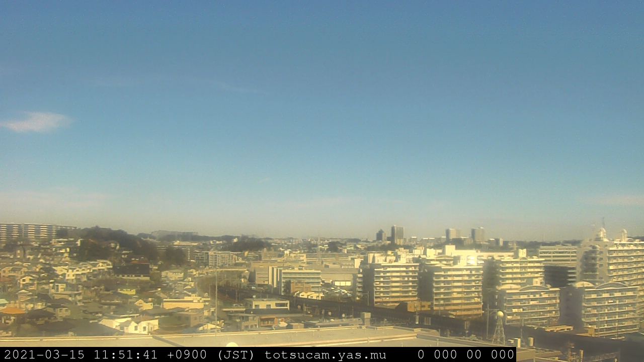 横浜市戸塚駅周辺から 東戸塚方面(北北東)を望む展望カメラの映像です。 左は現在の映像です。 下に並んでいるのは、 7日間に亘る日の出どき、昼間、夕暮れどきの写真(サムネイル)です。 それぞれ、日の出15分前、南中時、日没20分後の写真となっています。 各写真の下にはmpeg形式の動画へのリンクがあります。 それぞれ、日の出、南中、日没の前後1時間の画像です。 右欄にはその日24時間の動画へのリンクがあります。 この7日間以外は日付が一覧表示されています。 日付部分をクリックすると、 その日付から7日分が展開されて表示されます。