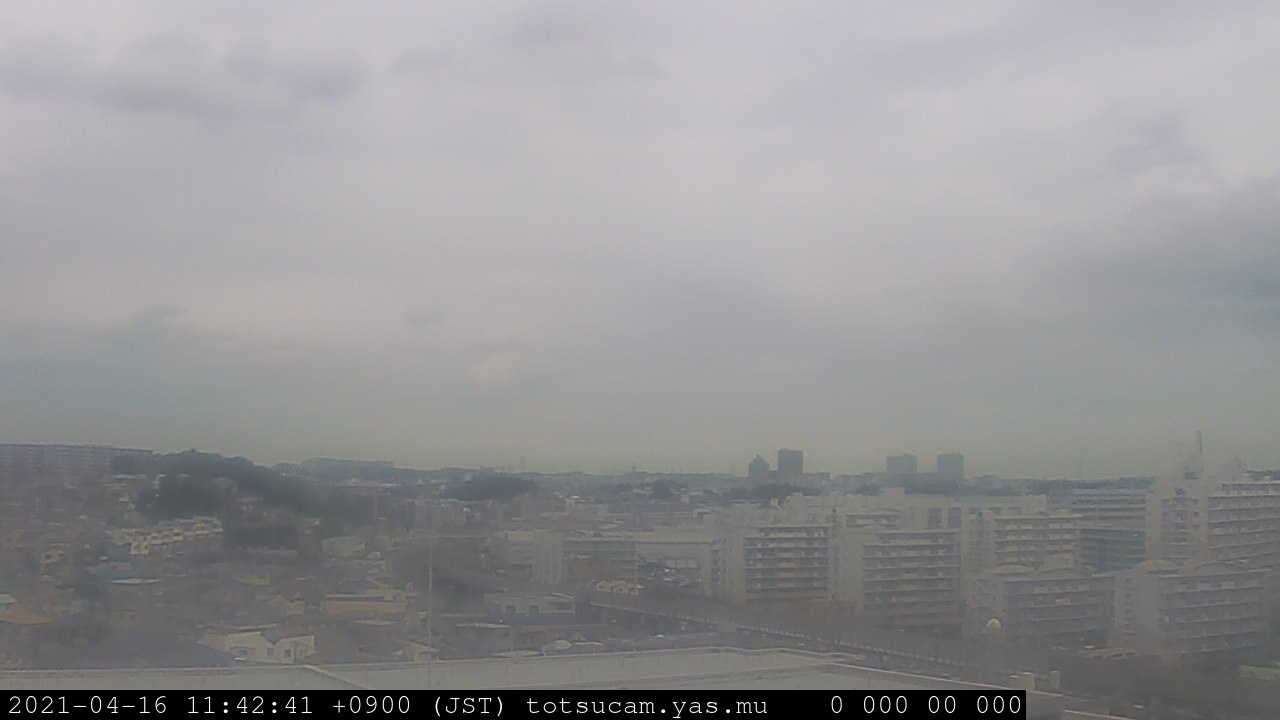 横浜市戸塚駅周辺から 東戸塚方面(北北東)を望む展望カメラの映像です。 左は現在の映像です。 下に並んでいるのは、 7日間に亘る日の出どき、昼間、夕暮れどきの写真(サムネイル)です。 それぞれ、日の出15分前、南中時、日没20分後の写真となっています。 各写真の下にはmpeg形式の動画へのリンクがあります。 それぞれ、日の出、南中、日没の前後1時間の画像です。 右欄にはその日24時間の動画へのリンクがあります。 この7日間以外は日付が一覧表示されています。 日付部分をクリックすると、 その日付から7日分が展開されて表示されます。