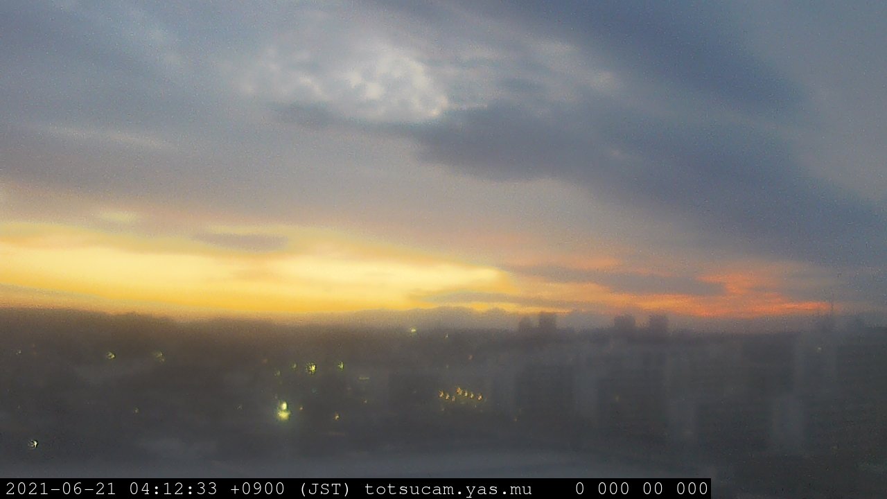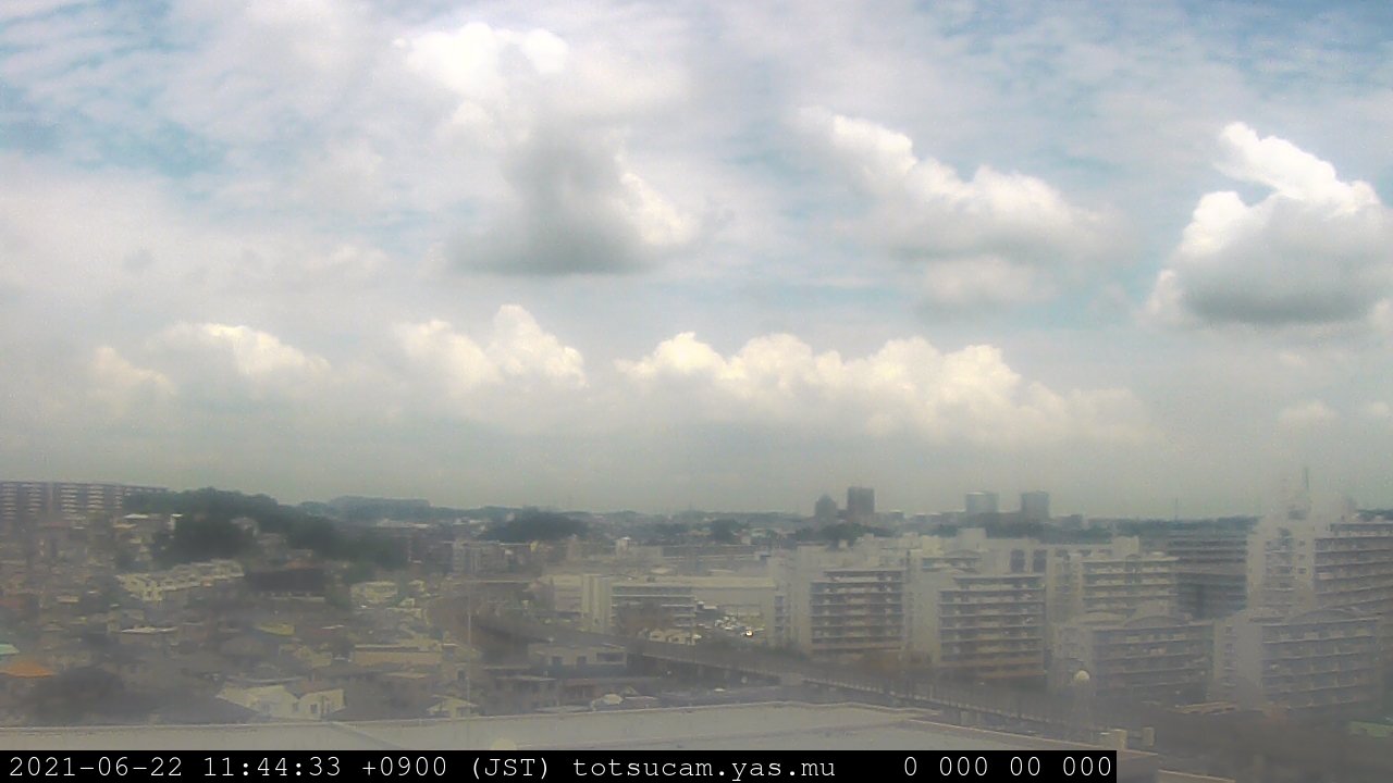 横浜市戸塚駅周辺から 東戸塚方面(北北東)を望む展望カメラの映像です。 左は現在の映像です。 下に並んでいるのは、 7日間に亘る日の出どき、昼間、夕暮れどきの写真(サムネイル)です。 それぞれ、日の出15分前、南中時、日没20分後の写真となっています。 各写真の下にはmpeg形式の動画へのリンクがあります。 それぞれ、日の出、南中、日没の前後1時間の画像です。 右欄にはその日24時間の動画へのリンクがあります。 この7日間以外は日付が一覧表示されています。 日付部分をクリックすると、 その日付から7日分が展開されて表示されます。