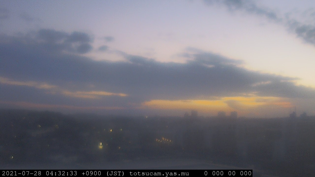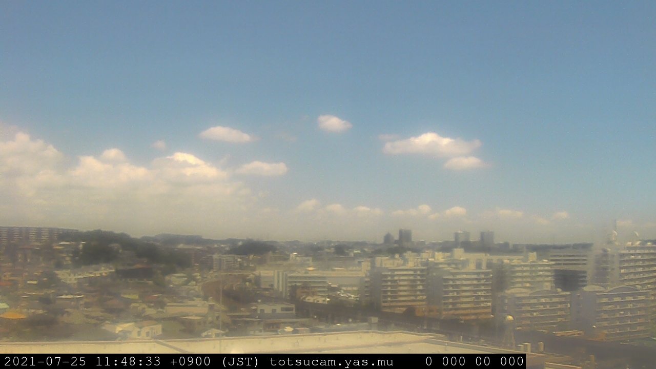 横浜市戸塚駅周辺から 東戸塚方面(北北東)を望む展望カメラの映像です。 左は現在の映像です。 下に並んでいるのは、 7日間に亘る日の出どき、昼間、夕暮れどきの写真(サムネイル)です。 それぞれ、日の出15分前、南中時、日没20分後の写真となっています。 各写真の下にはmpeg形式の動画へのリンクがあります。 それぞれ、日の出、南中、日没の前後1時間の画像です。 右欄にはその日24時間の動画へのリンクがあります。 この7日間以外は日付が一覧表示されています。 日付部分をクリックすると、 その日付から7日分が展開されて表示されます。