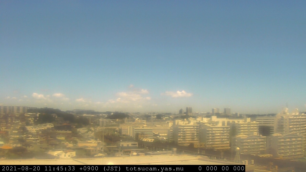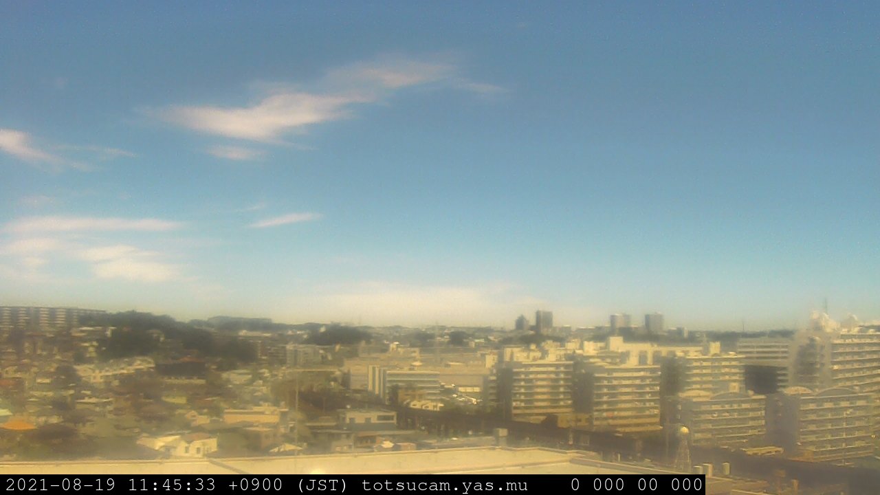 横浜市戸塚駅周辺から 東戸塚方面(北北東)を望む展望カメラの映像です。 左は現在の映像です。 下に並んでいるのは、 7日間に亘る日の出どき、昼間、夕暮れどきの写真(サムネイル)です。 それぞれ、日の出15分前、南中時、日没20分後の写真となっています。 各写真の下にはmpeg形式の動画へのリンクがあります。 それぞれ、日の出、南中、日没の前後1時間の画像です。 右欄にはその日24時間の動画へのリンクがあります。 この7日間以外は日付が一覧表示されています。 日付部分をクリックすると、 その日付から7日分が展開されて表示されます。