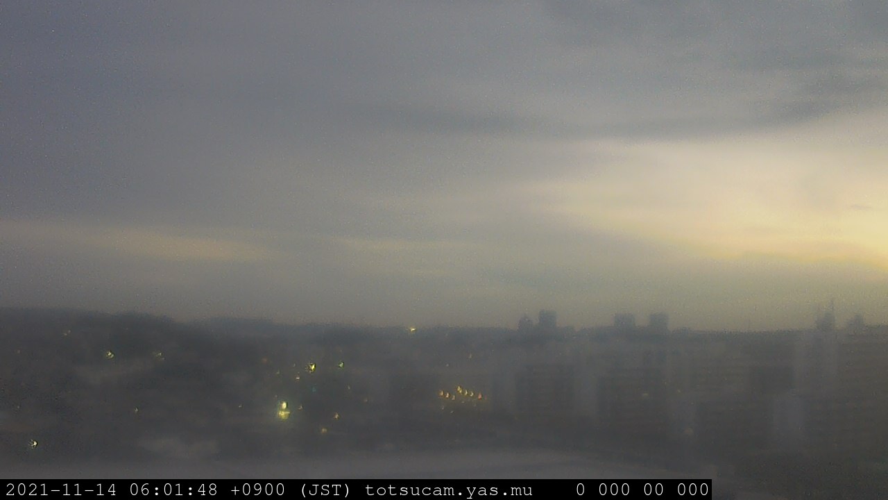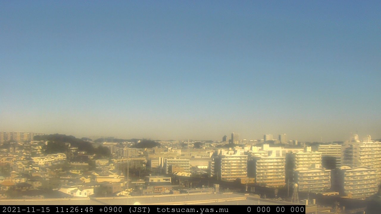 横浜市戸塚駅周辺から 東戸塚方面(北北東)を望む展望カメラの映像です。 左は現在の映像です。 下に並んでいるのは、 7日間に亘る日の出どき、昼間、夕暮れどきの写真(サムネイル)です。 それぞれ、日の出15分前、南中時、日没20分後の写真となっています。 各写真の下にはmpeg形式の動画へのリンクがあります。 それぞれ、日の出、南中、日没の前後1時間の画像です。 右欄にはその日24時間の動画へのリンクがあります。 この7日間以外は日付が一覧表示されています。 日付部分をクリックすると、 その日付から7日分が展開されて表示されます。