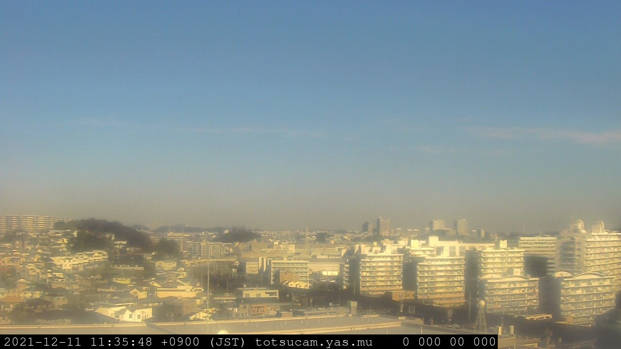 横浜市戸塚駅周辺から 東戸塚方面(北北東)を望む展望カメラの映像です。 左は現在の映像です。 下に並んでいるのは、 7日間に亘る日の出どき、昼間、夕暮れどきの写真(サムネイル)です。 それぞれ、日の出15分前、南中時、日没20分後の写真となっています。 各写真の下にはmpeg形式の動画へのリンクがあります。 それぞれ、日の出、南中、日没の前後1時間の画像です。 右欄にはその日24時間の動画へのリンクがあります。 この7日間以外は日付が一覧表示されています。 日付部分をクリックすると、 その日付から7日分が展開されて表示されます。