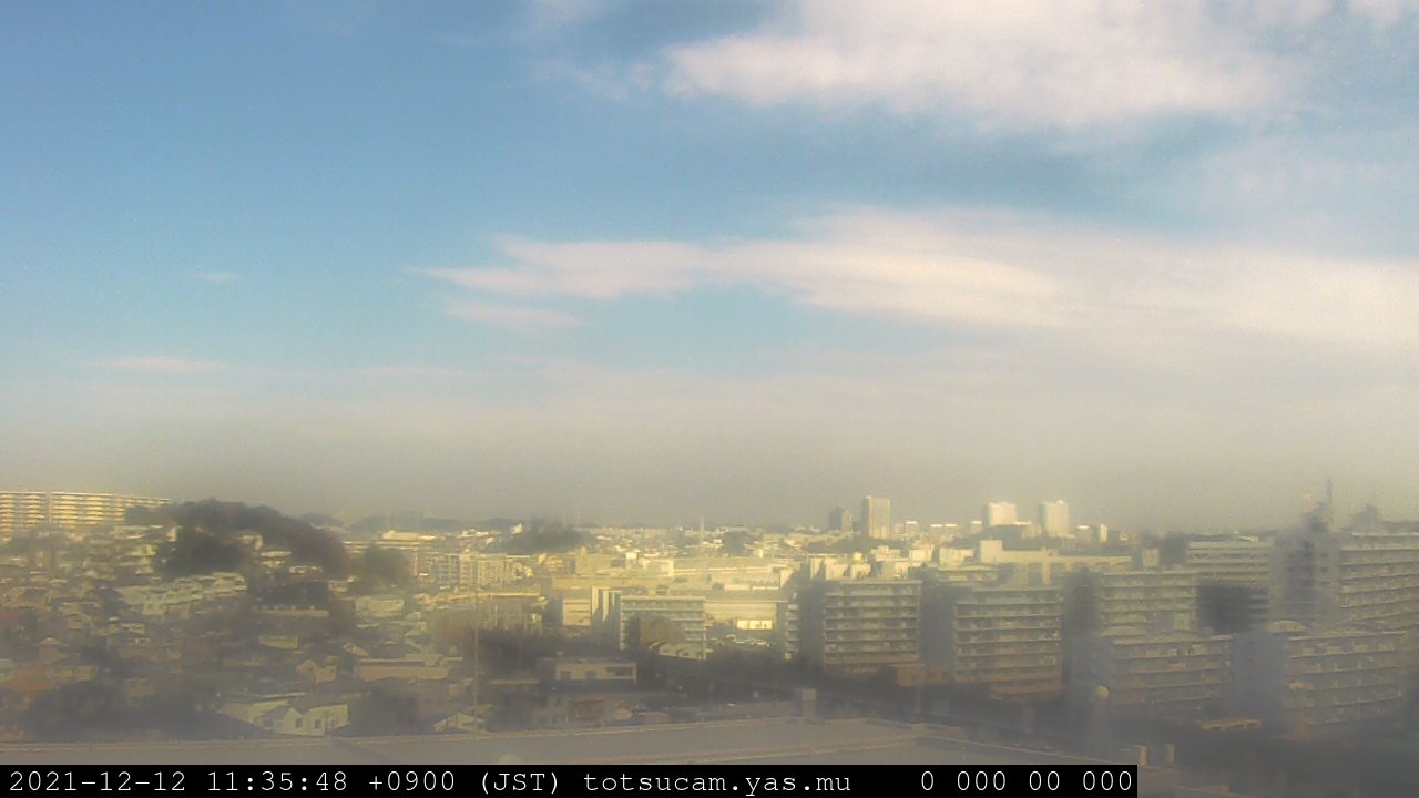 横浜市戸塚駅周辺から 東戸塚方面(北北東)を望む展望カメラの映像です。 左は現在の映像です。 下に並んでいるのは、 7日間に亘る日の出どき、昼間、夕暮れどきの写真(サムネイル)です。 それぞれ、日の出15分前、南中時、日没20分後の写真となっています。 各写真の下にはmpeg形式の動画へのリンクがあります。 それぞれ、日の出、南中、日没の前後1時間の画像です。 右欄にはその日24時間の動画へのリンクがあります。 この7日間以外は日付が一覧表示されています。 日付部分をクリックすると、 その日付から7日分が展開されて表示されます。