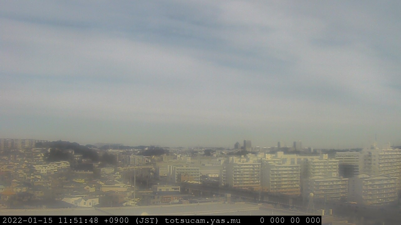 横浜市戸塚駅周辺から 東戸塚方面(北北東)を望む展望カメラの映像です。 左は現在の映像です。 下に並んでいるのは、 7日間に亘る日の出どき、昼間、夕暮れどきの写真(サムネイル)です。 それぞれ、日の出15分前、南中時、日没20分後の写真となっています。 各写真の下にはmpeg形式の動画へのリンクがあります。 それぞれ、日の出、南中、日没の前後1時間の画像です。 右欄にはその日24時間の動画へのリンクがあります。 この7日間以外は日付が一覧表示されています。 日付部分をクリックすると、 その日付から7日分が展開されて表示されます。