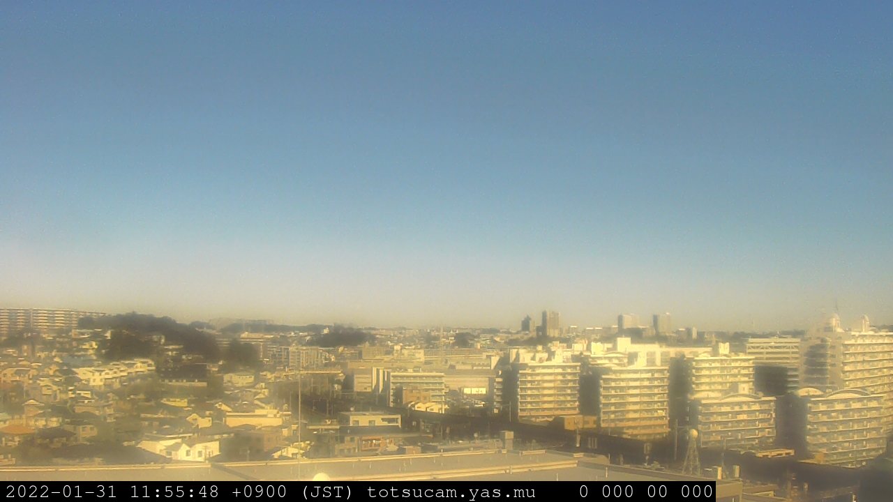 横浜市戸塚駅周辺から 東戸塚方面(北北東)を望む展望カメラの映像です。 左は現在の映像です。 下に並んでいるのは、 7日間に亘る日の出どき、昼間、夕暮れどきの写真(サムネイル)です。 それぞれ、日の出15分前、南中時、日没20分後の写真となっています。 各写真の下にはmpeg形式の動画へのリンクがあります。 それぞれ、日の出、南中、日没の前後1時間の画像です。 右欄にはその日24時間の動画へのリンクがあります。 この7日間以外は日付が一覧表示されています。 日付部分をクリックすると、 その日付から7日分が展開されて表示されます。