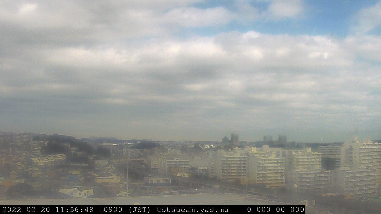 横浜市戸塚駅周辺から 東戸塚方面(北北東)を望む展望カメラの映像です。 左は現在の映像です。 下に並んでいるのは、 7日間に亘る日の出どき、昼間、夕暮れどきの写真(サムネイル)です。 それぞれ、日の出15分前、南中時、日没20分後の写真となっています。 各写真の下にはmpeg形式の動画へのリンクがあります。 それぞれ、日の出、南中、日没の前後1時間の画像です。 右欄にはその日24時間の動画へのリンクがあります。 この7日間以外は日付が一覧表示されています。 日付部分をクリックすると、 その日付から7日分が展開されて表示されます。