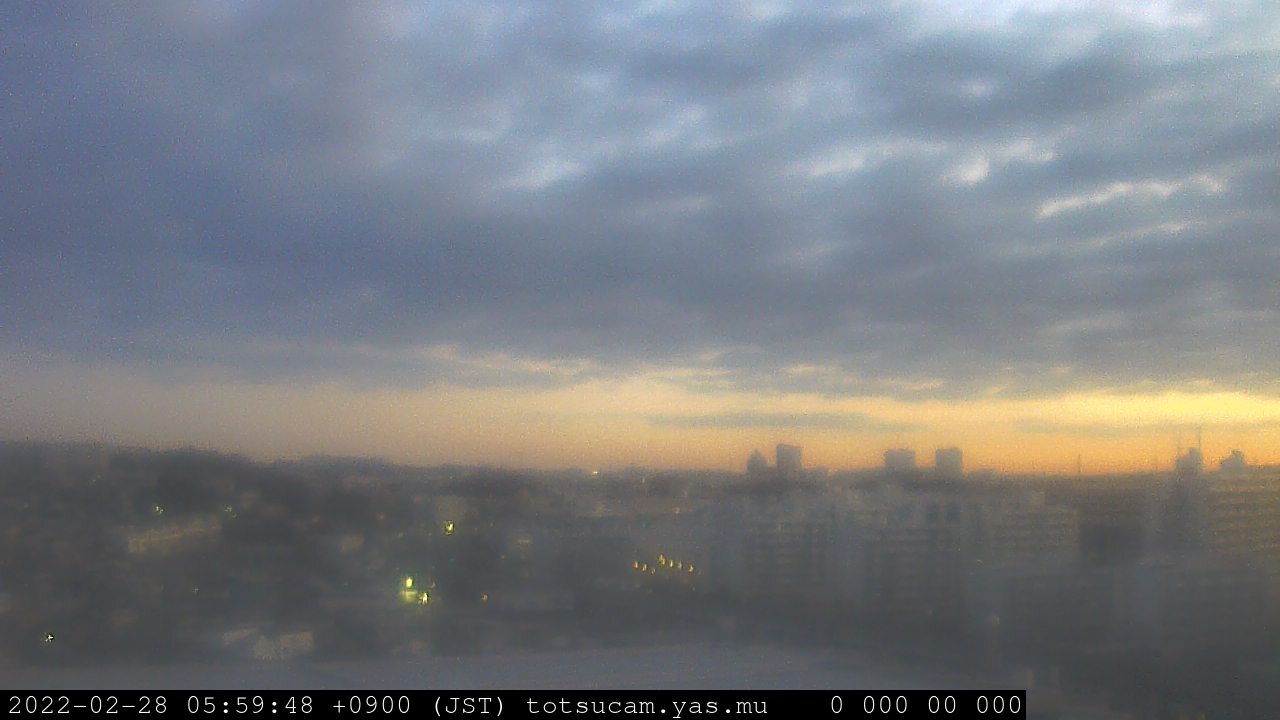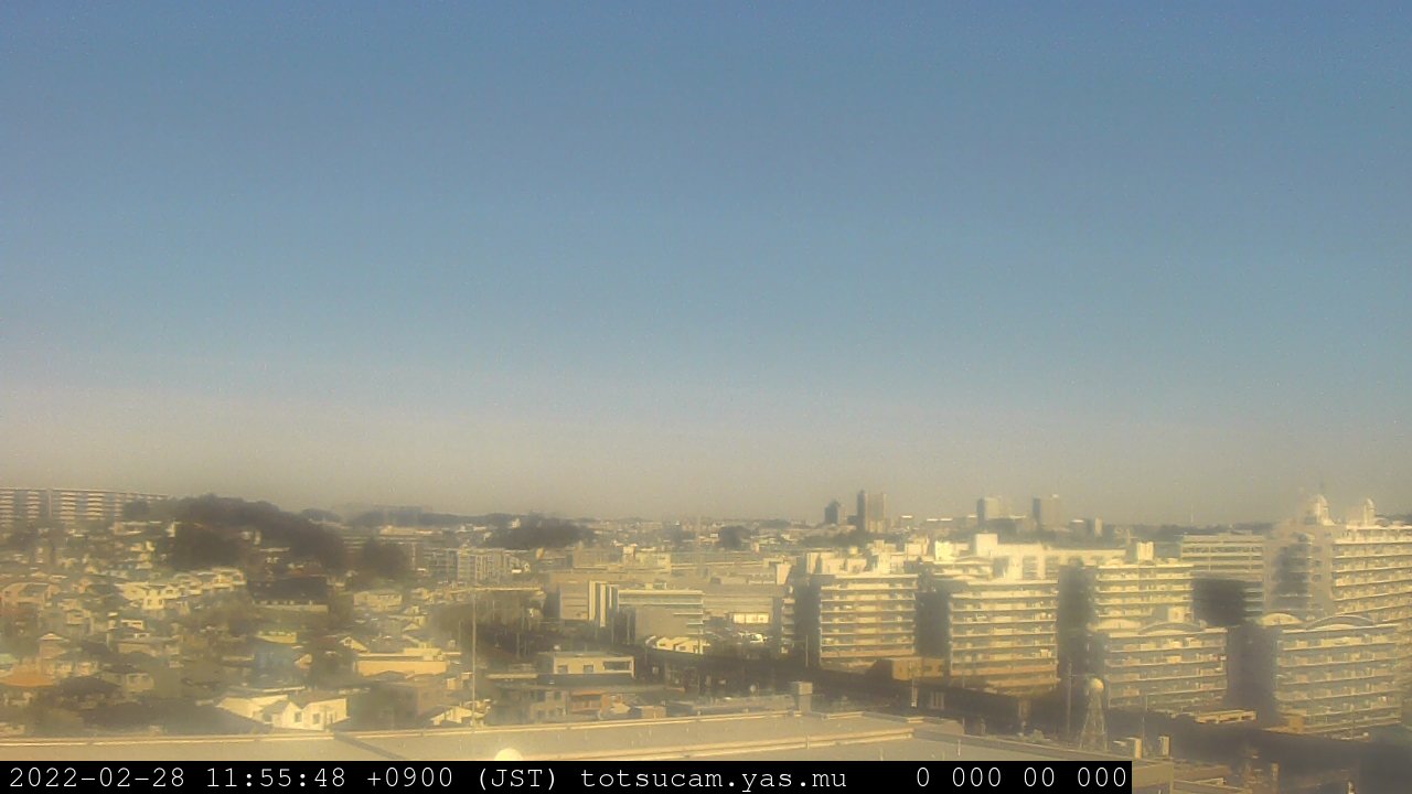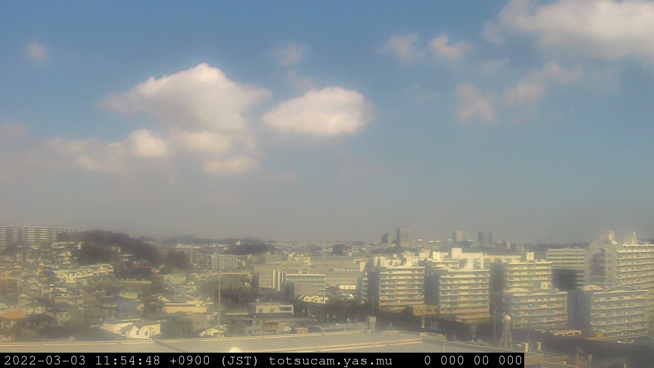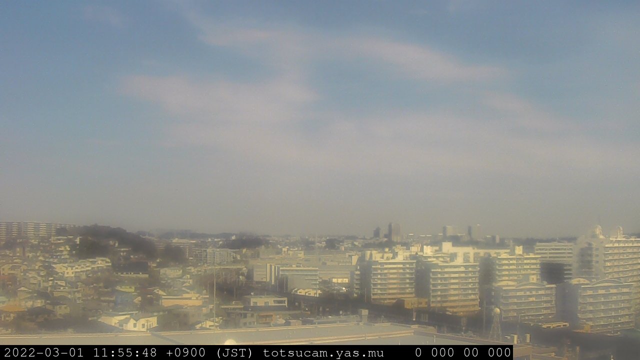 横浜市戸塚駅周辺から 東戸塚方面(北北東)を望む展望カメラの映像です。 左は現在の映像です。 下に並んでいるのは、 7日間に亘る日の出どき、昼間、夕暮れどきの写真(サムネイル)です。 それぞれ、日の出15分前、南中時、日没20分後の写真となっています。 各写真の下にはmpeg形式の動画へのリンクがあります。 それぞれ、日の出、南中、日没の前後1時間の画像です。 右欄にはその日24時間の動画へのリンクがあります。 この7日間以外は日付が一覧表示されています。 日付部分をクリックすると、 その日付から7日分が展開されて表示されます。