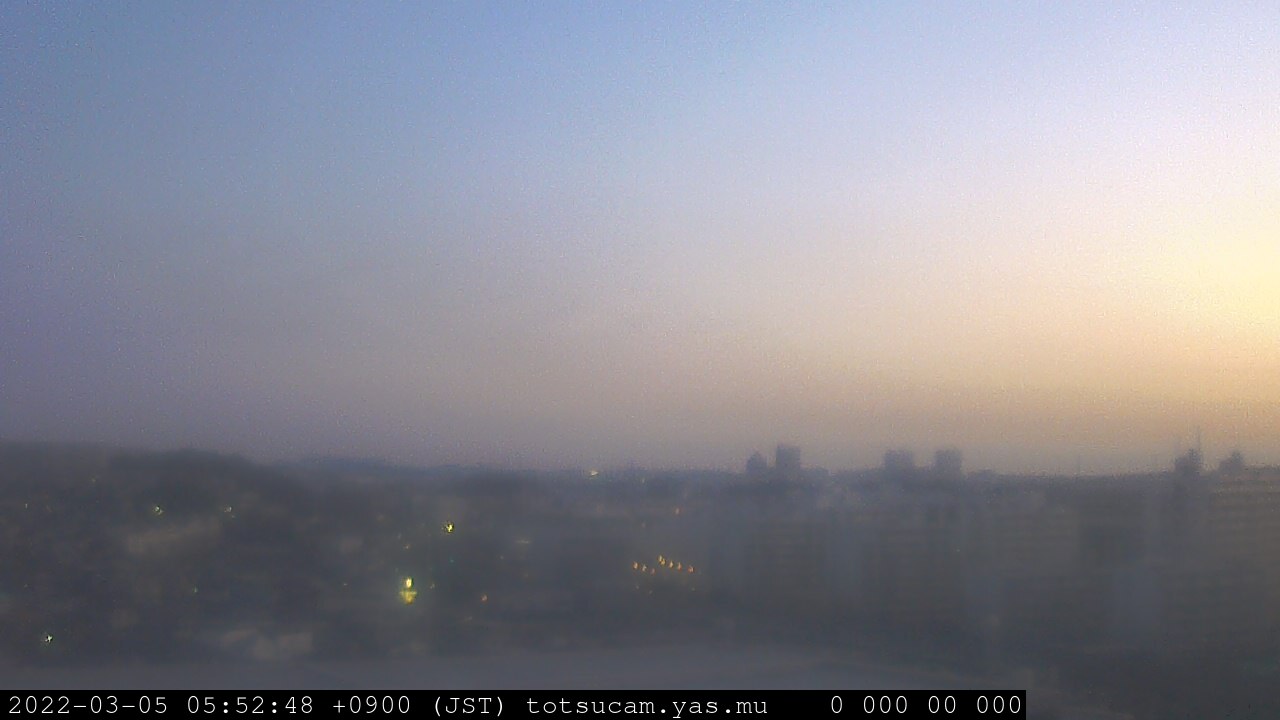 横浜市戸塚駅周辺から 東戸塚方面(北北東)を望む展望カメラの映像です。 左は現在の映像です。 下に並んでいるのは、 7日間に亘る日の出どき、昼間、夕暮れどきの写真(サムネイル)です。 それぞれ、日の出15分前、南中時、日没20分後の写真となっています。 各写真の下にはmpeg形式の動画へのリンクがあります。 それぞれ、日の出、南中、日没の前後1時間の画像です。 右欄にはその日24時間の動画へのリンクがあります。 この7日間以外は日付が一覧表示されています。 日付部分をクリックすると、 その日付から7日分が展開されて表示されます。