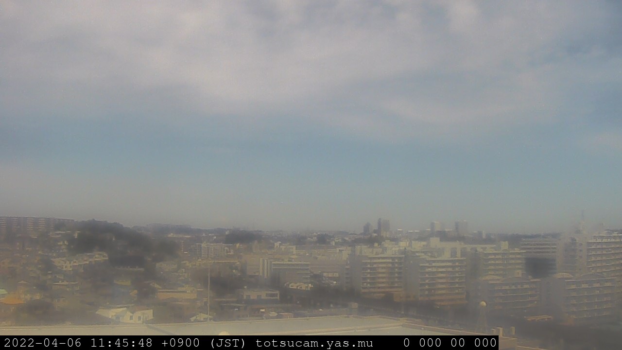 横浜市戸塚駅周辺から 東戸塚方面(北北東)を望む展望カメラの映像です。 左は現在の映像です。 下に並んでいるのは、 7日間に亘る日の出どき、昼間、夕暮れどきの写真(サムネイル)です。 それぞれ、日の出15分前、南中時、日没20分後の写真となっています。 各写真の下にはmpeg形式の動画へのリンクがあります。 それぞれ、日の出、南中、日没の前後1時間の画像です。 右欄にはその日24時間の動画へのリンクがあります。 この7日間以外は日付が一覧表示されています。 日付部分をクリックすると、 その日付から7日分が展開されて表示されます。