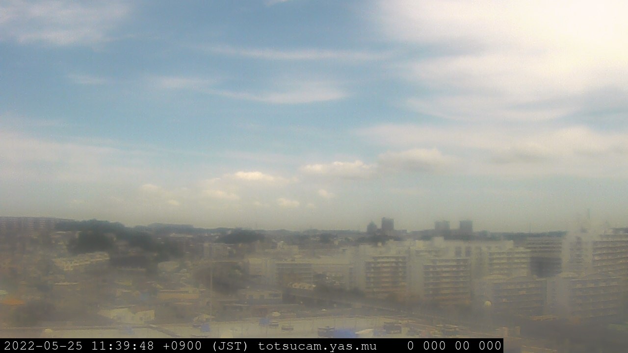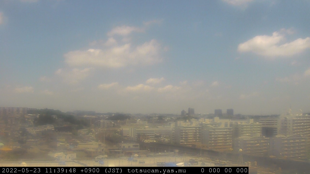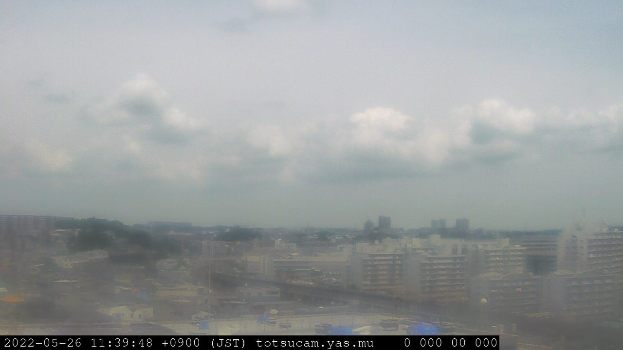横浜市戸塚駅周辺から 東戸塚方面(北北東)を望む展望カメラの映像です。 左は現在の映像です。 下に並んでいるのは、 7日間に亘る日の出どき、昼間、夕暮れどきの写真(サムネイル)です。 それぞれ、日の出15分前、南中時、日没20分後の写真となっています。 各写真の下にはmpeg形式の動画へのリンクがあります。 それぞれ、日の出、南中、日没の前後1時間の画像です。 右欄にはその日24時間の動画へのリンクがあります。 この7日間以外は日付が一覧表示されています。 日付部分をクリックすると、 その日付から7日分が展開されて表示されます。