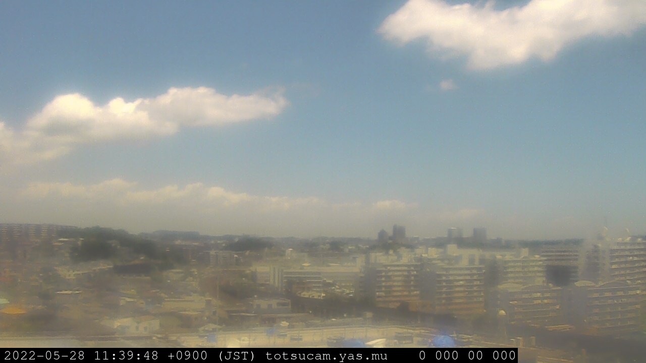 横浜市戸塚駅周辺から 東戸塚方面(北北東)を望む展望カメラの映像です。 左は現在の映像です。 下に並んでいるのは、 7日間に亘る日の出どき、昼間、夕暮れどきの写真(サムネイル)です。 それぞれ、日の出15分前、南中時、日没20分後の写真となっています。 各写真の下にはmpeg形式の動画へのリンクがあります。 それぞれ、日の出、南中、日没の前後1時間の画像です。 右欄にはその日24時間の動画へのリンクがあります。 この7日間以外は日付が一覧表示されています。 日付部分をクリックすると、 その日付から7日分が展開されて表示されます。
