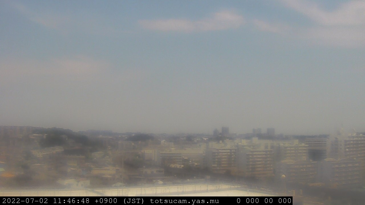 横浜市戸塚駅周辺から 東戸塚方面(北北東)を望む展望カメラの映像です。 左は現在の映像です。 下に並んでいるのは、 7日間に亘る日の出どき、昼間、夕暮れどきの写真(サムネイル)です。 それぞれ、日の出15分前、南中時、日没20分後の写真となっています。 各写真の下にはmpeg形式の動画へのリンクがあります。 それぞれ、日の出、南中、日没の前後1時間の画像です。 右欄にはその日24時間の動画へのリンクがあります。 この7日間以外は日付が一覧表示されています。 日付部分をクリックすると、 その日付から7日分が展開されて表示されます。