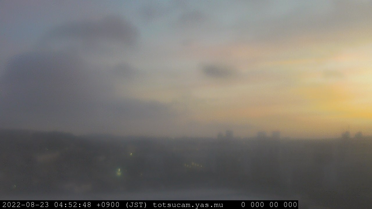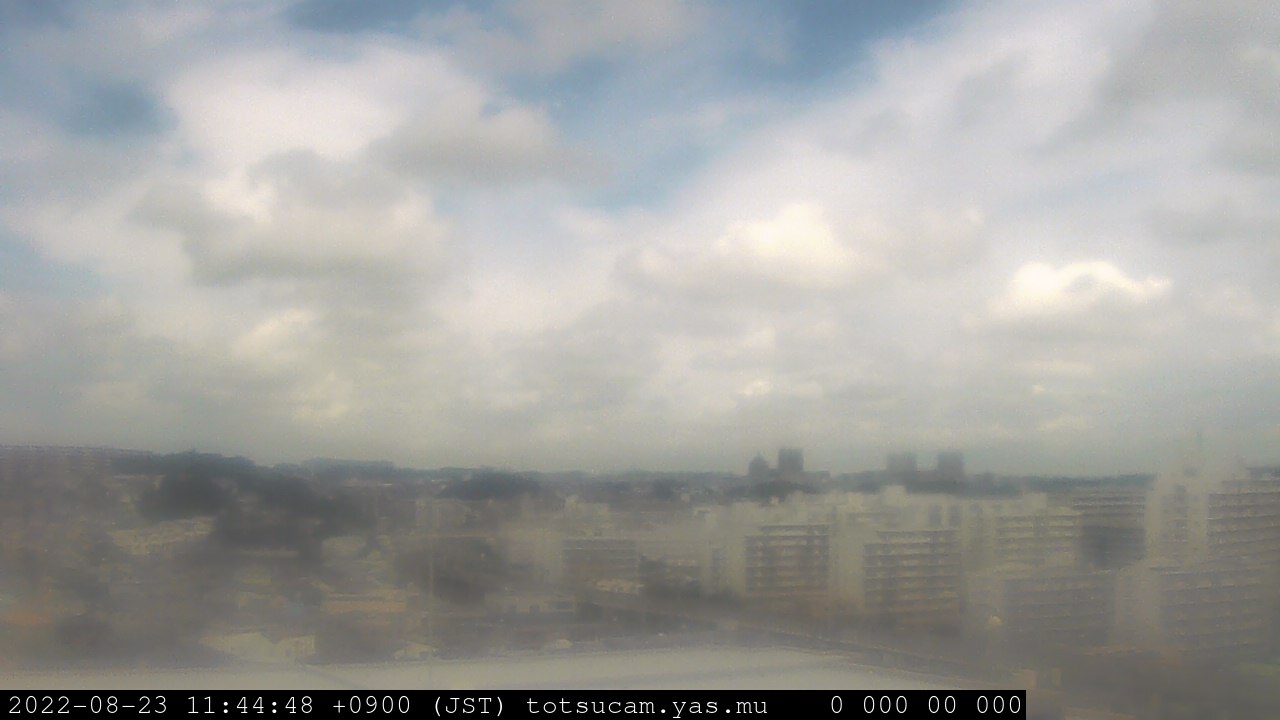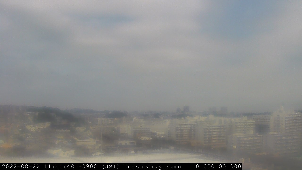 横浜市戸塚駅周辺から 東戸塚方面(北北東)を望む展望カメラの映像です。 左は現在の映像です。 下に並んでいるのは、 7日間に亘る日の出どき、昼間、夕暮れどきの写真(サムネイル)です。 それぞれ、日の出15分前、南中時、日没20分後の写真となっています。 各写真の下にはmpeg形式の動画へのリンクがあります。 それぞれ、日の出、南中、日没の前後1時間の画像です。 右欄にはその日24時間の動画へのリンクがあります。 この7日間以外は日付が一覧表示されています。 日付部分をクリックすると、 その日付から7日分が展開されて表示されます。
