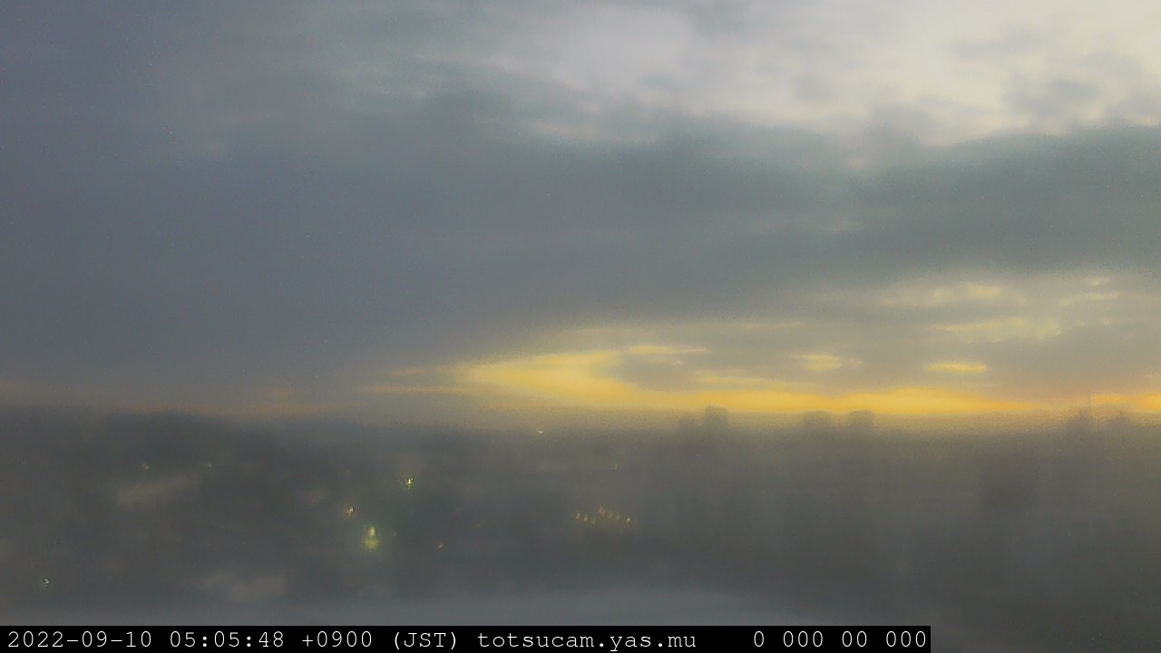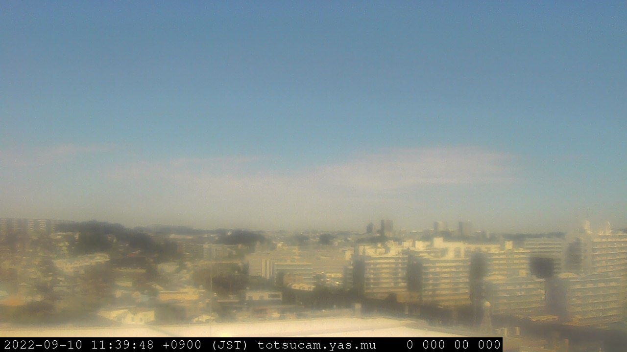 横浜市戸塚駅周辺から 東戸塚方面(北北東)を望む展望カメラの映像です。 左は現在の映像です。 下に並んでいるのは、 7日間に亘る日の出どき、昼間、夕暮れどきの写真(サムネイル)です。 それぞれ、日の出15分前、南中時、日没20分後の写真となっています。 各写真の下にはmpeg形式の動画へのリンクがあります。 それぞれ、日の出、南中、日没の前後1時間の画像です。 右欄にはその日24時間の動画へのリンクがあります。 この7日間以外は日付が一覧表示されています。 日付部分をクリックすると、 その日付から7日分が展開されて表示されます。