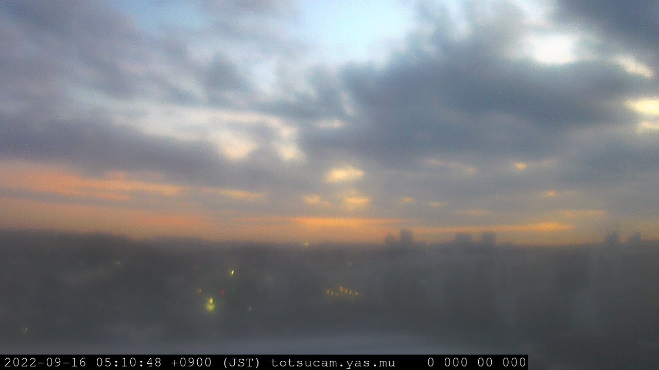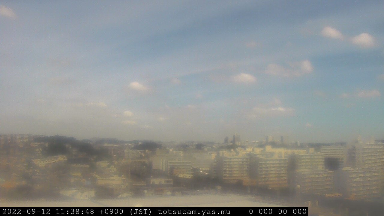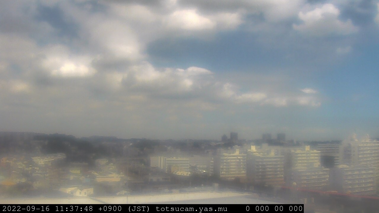 横浜市戸塚駅周辺から 東戸塚方面(北北東)を望む展望カメラの映像です。 左は現在の映像です。 下に並んでいるのは、 7日間に亘る日の出どき、昼間、夕暮れどきの写真(サムネイル)です。 それぞれ、日の出15分前、南中時、日没20分後の写真となっています。 各写真の下にはmpeg形式の動画へのリンクがあります。 それぞれ、日の出、南中、日没の前後1時間の画像です。 右欄にはその日24時間の動画へのリンクがあります。 この7日間以外は日付が一覧表示されています。 日付部分をクリックすると、 その日付から7日分が展開されて表示されます。