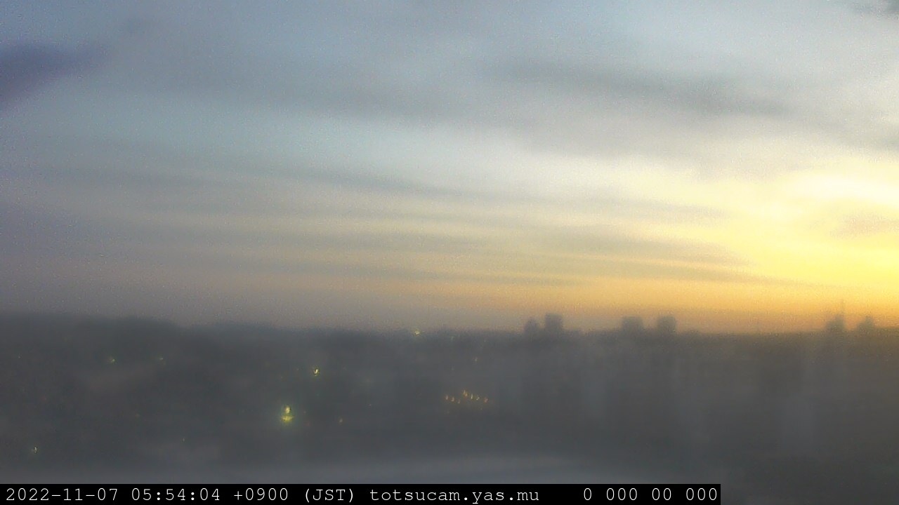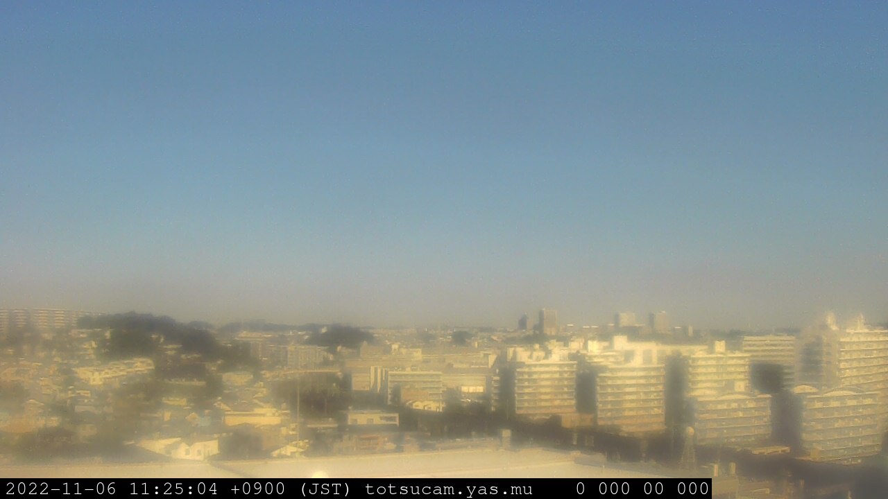 横浜市戸塚駅周辺から 東戸塚方面(北北東)を望む展望カメラの映像です。 左は現在の映像です。 下に並んでいるのは、 7日間に亘る日の出どき、昼間、夕暮れどきの写真(サムネイル)です。 それぞれ、日の出15分前、南中時、日没20分後の写真となっています。 各写真の下にはmpeg形式の動画へのリンクがあります。 それぞれ、日の出、南中、日没の前後1時間の画像です。 右欄にはその日24時間の動画へのリンクがあります。 この7日間以外は日付が一覧表示されています。 日付部分をクリックすると、 その日付から7日分が展開されて表示されます。