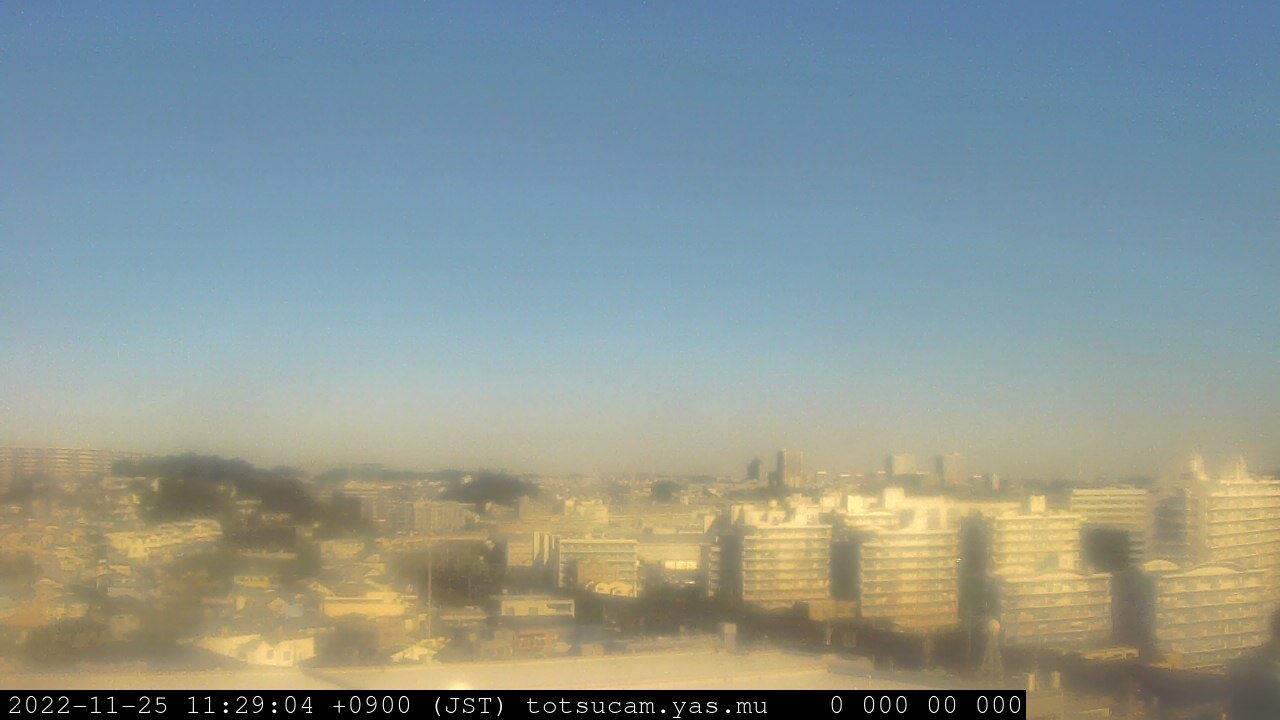 横浜市戸塚駅周辺から 東戸塚方面(北北東)を望む展望カメラの映像です。 左は現在の映像です。 下に並んでいるのは、 7日間に亘る日の出どき、昼間、夕暮れどきの写真(サムネイル)です。 それぞれ、日の出15分前、南中時、日没20分後の写真となっています。 各写真の下にはmpeg形式の動画へのリンクがあります。 それぞれ、日の出、南中、日没の前後1時間の画像です。 右欄にはその日24時間の動画へのリンクがあります。 この7日間以外は日付が一覧表示されています。 日付部分をクリックすると、 その日付から7日分が展開されて表示されます。