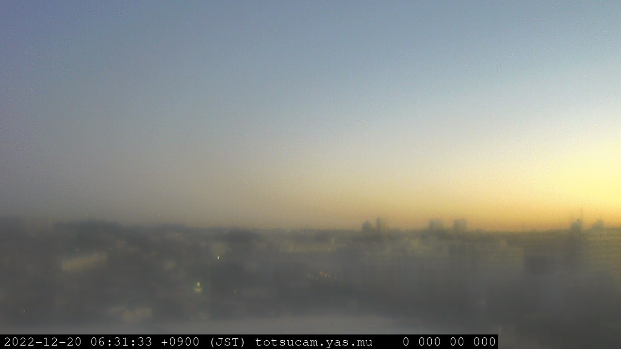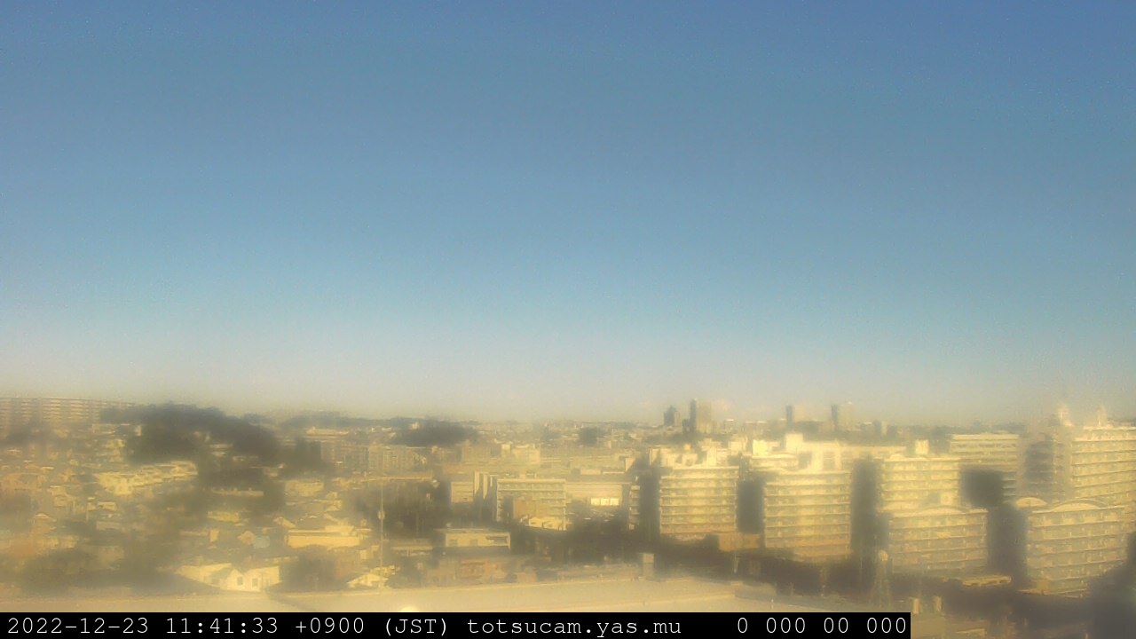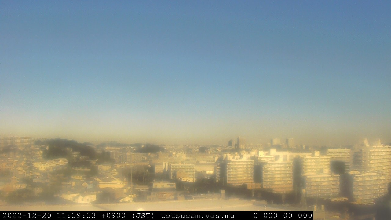横浜市戸塚駅周辺から 東戸塚方面(北北東)を望む展望カメラの映像です。 左は現在の映像です。 下に並んでいるのは、 7日間に亘る日の出どき、昼間、夕暮れどきの写真(サムネイル)です。 それぞれ、日の出15分前、南中時、日没20分後の写真となっています。 各写真の下にはmpeg形式の動画へのリンクがあります。 それぞれ、日の出、南中、日没の前後1時間の画像です。 右欄にはその日24時間の動画へのリンクがあります。 この7日間以外は日付が一覧表示されています。 日付部分をクリックすると、 その日付から7日分が展開されて表示されます。