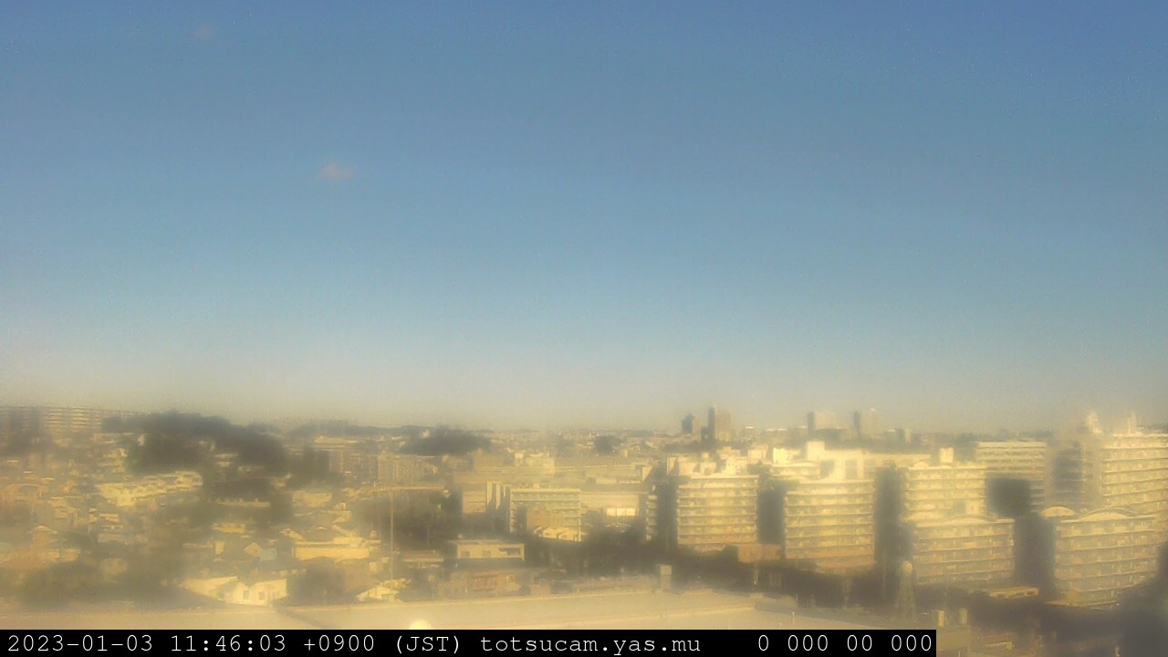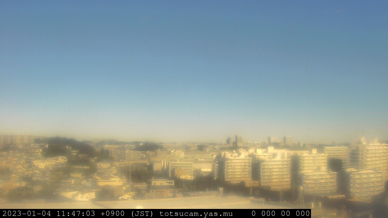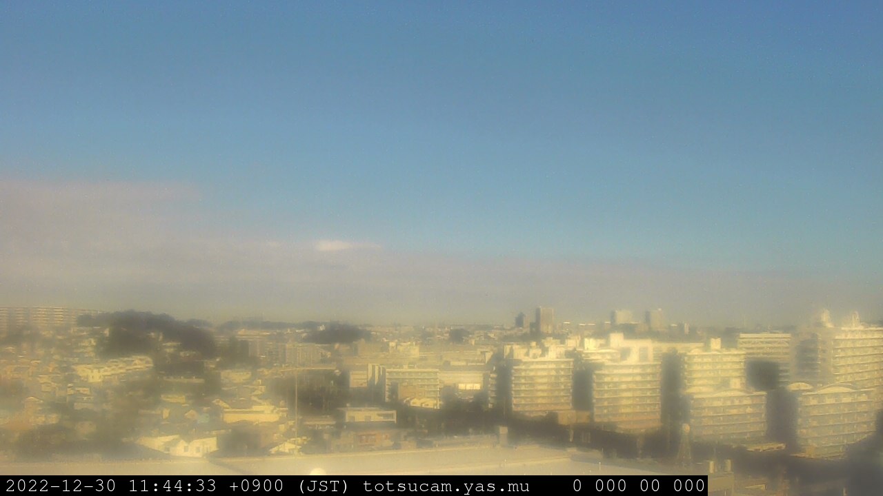 横浜市戸塚駅周辺から 東戸塚方面(北北東)を望む展望カメラの映像です。 左は現在の映像です。 下に並んでいるのは、 7日間に亘る日の出どき、昼間、夕暮れどきの写真(サムネイル)です。 それぞれ、日の出15分前、南中時、日没20分後の写真となっています。 各写真の下にはmpeg形式の動画へのリンクがあります。 それぞれ、日の出、南中、日没の前後1時間の画像です。 右欄にはその日24時間の動画へのリンクがあります。 この7日間以外は日付が一覧表示されています。 日付部分をクリックすると、 その日付から7日分が展開されて表示されます。