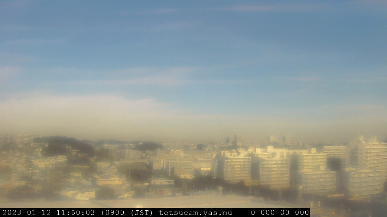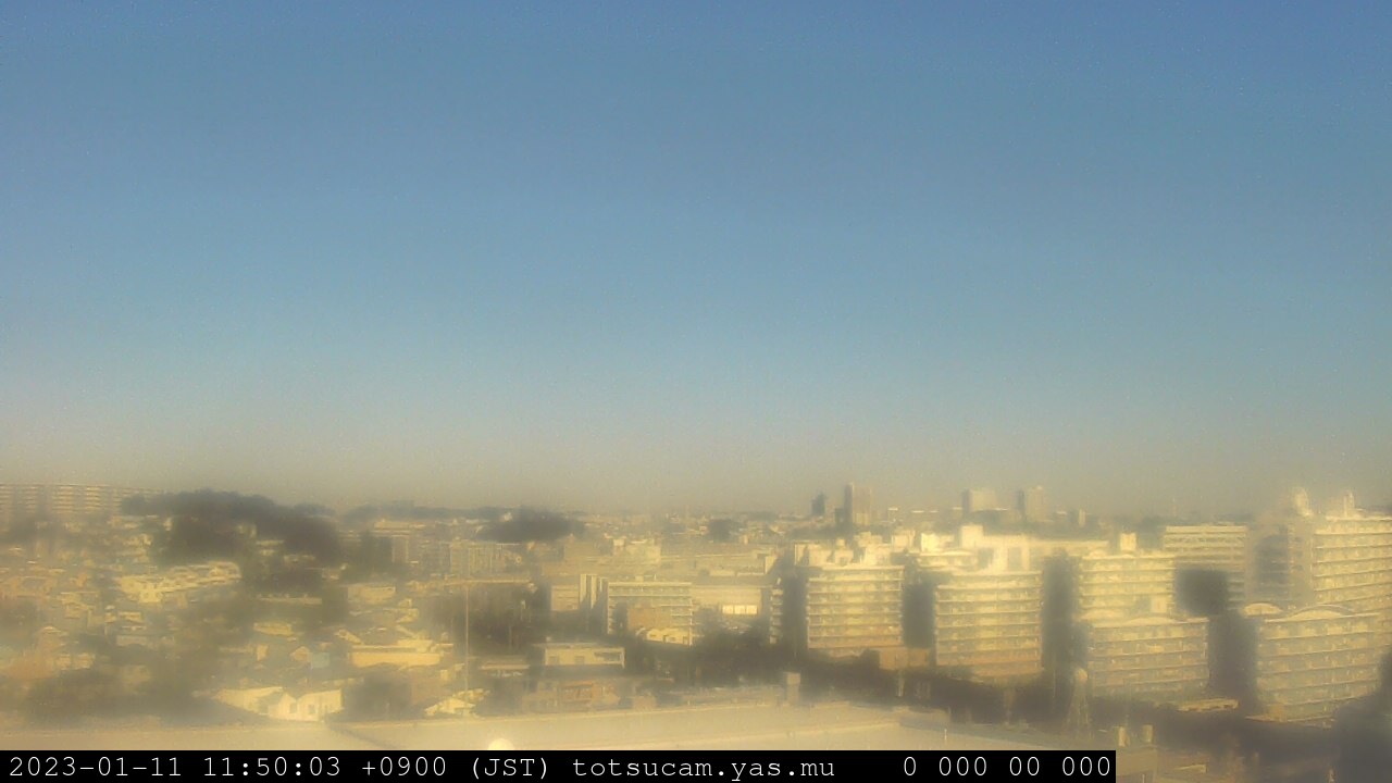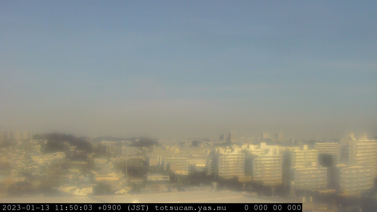 横浜市戸塚駅周辺から 東戸塚方面(北北東)を望む展望カメラの映像です。 左は現在の映像です。 下に並んでいるのは、 7日間に亘る日の出どき、昼間、夕暮れどきの写真(サムネイル)です。 それぞれ、日の出15分前、南中時、日没20分後の写真となっています。 各写真の下にはmpeg形式の動画へのリンクがあります。 それぞれ、日の出、南中、日没の前後1時間の画像です。 右欄にはその日24時間の動画へのリンクがあります。 この7日間以外は日付が一覧表示されています。 日付部分をクリックすると、 その日付から7日分が展開されて表示されます。