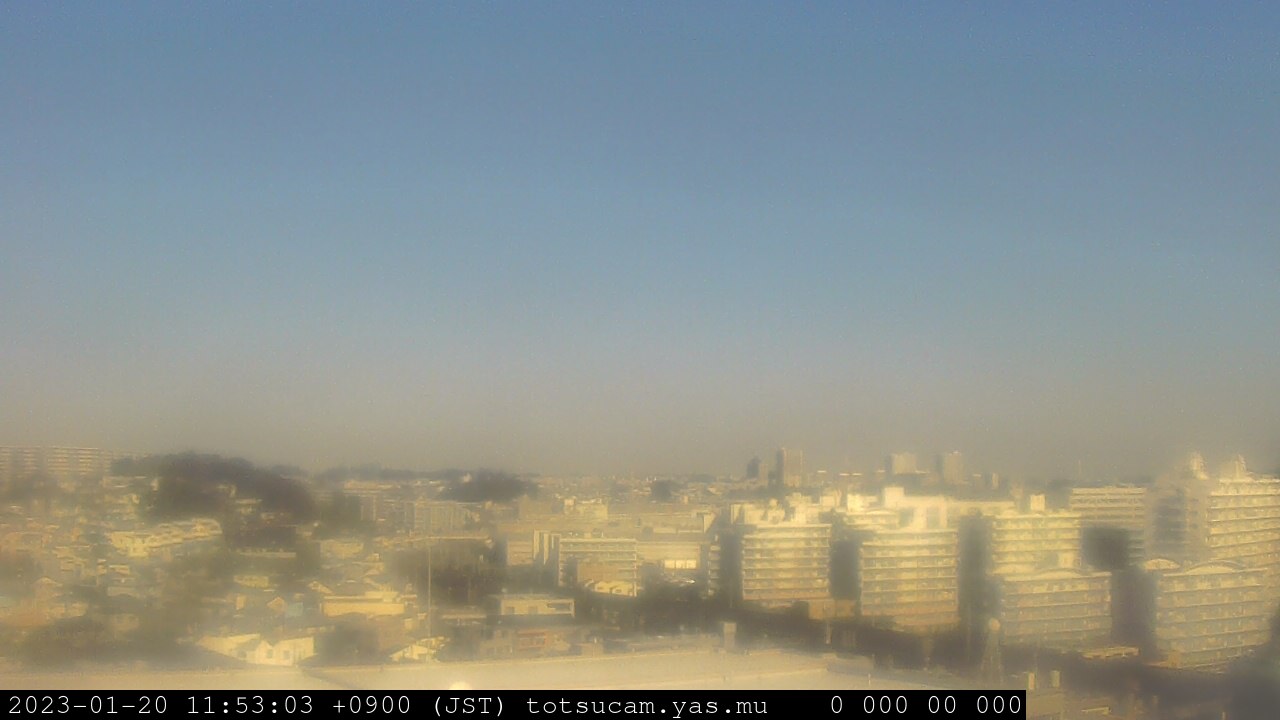 横浜市戸塚駅周辺から 東戸塚方面(北北東)を望む展望カメラの映像です。 左は現在の映像です。 下に並んでいるのは、 7日間に亘る日の出どき、昼間、夕暮れどきの写真(サムネイル)です。 それぞれ、日の出15分前、南中時、日没20分後の写真となっています。 各写真の下にはmpeg形式の動画へのリンクがあります。 それぞれ、日の出、南中、日没の前後1時間の画像です。 右欄にはその日24時間の動画へのリンクがあります。 この7日間以外は日付が一覧表示されています。 日付部分をクリックすると、 その日付から7日分が展開されて表示されます。
