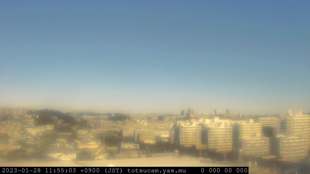 横浜市戸塚駅周辺から 東戸塚方面(北北東)を望む展望カメラの映像です。 左は現在の映像です。 下に並んでいるのは、 7日間に亘る日の出どき、昼間、夕暮れどきの写真(サムネイル)です。 それぞれ、日の出15分前、南中時、日没20分後の写真となっています。 各写真の下にはmpeg形式の動画へのリンクがあります。 それぞれ、日の出、南中、日没の前後1時間の画像です。 右欄にはその日24時間の動画へのリンクがあります。 この7日間以外は日付が一覧表示されています。 日付部分をクリックすると、 その日付から7日分が展開されて表示されます。