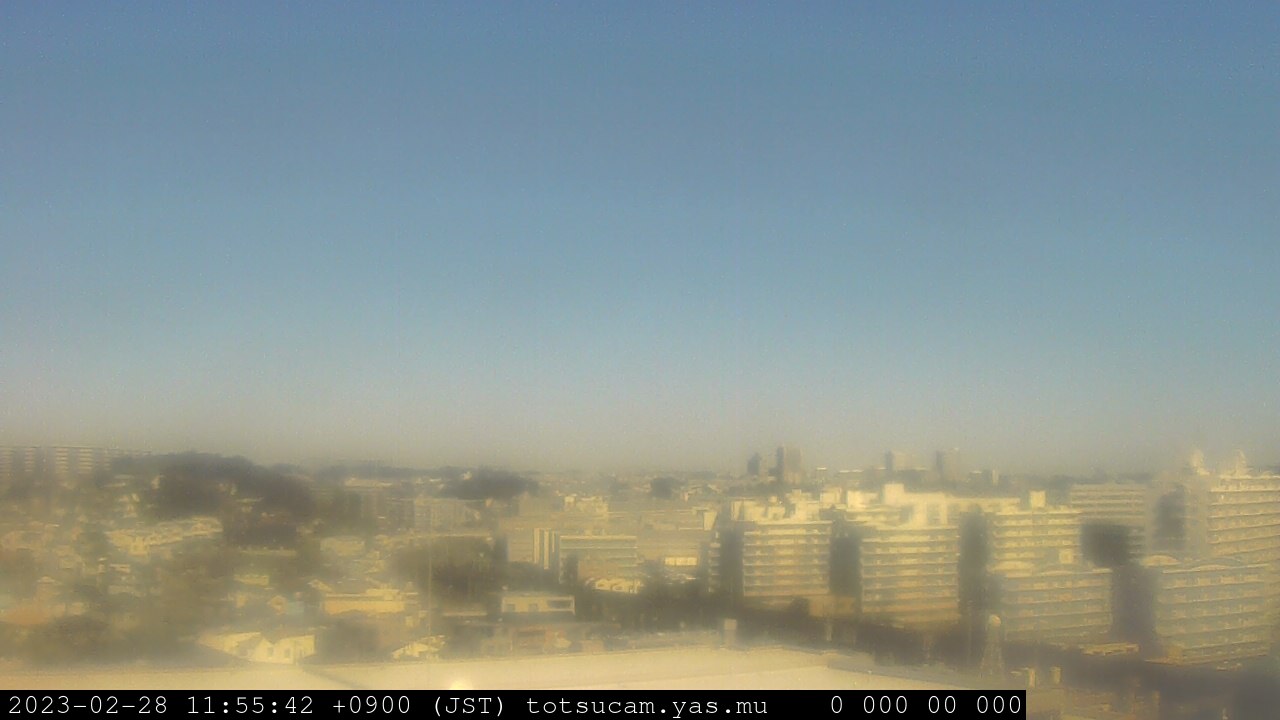 横浜市戸塚駅周辺から 東戸塚方面(北北東)を望む展望カメラの映像です。 左は現在の映像です。 下に並んでいるのは、 7日間に亘る日の出どき、昼間、夕暮れどきの写真(サムネイル)です。 それぞれ、日の出15分前、南中時、日没20分後の写真となっています。 各写真の下にはmpeg形式の動画へのリンクがあります。 それぞれ、日の出、南中、日没の前後1時間の画像です。 右欄にはその日24時間の動画へのリンクがあります。 この7日間以外は日付が一覧表示されています。 日付部分をクリックすると、 その日付から7日分が展開されて表示されます。