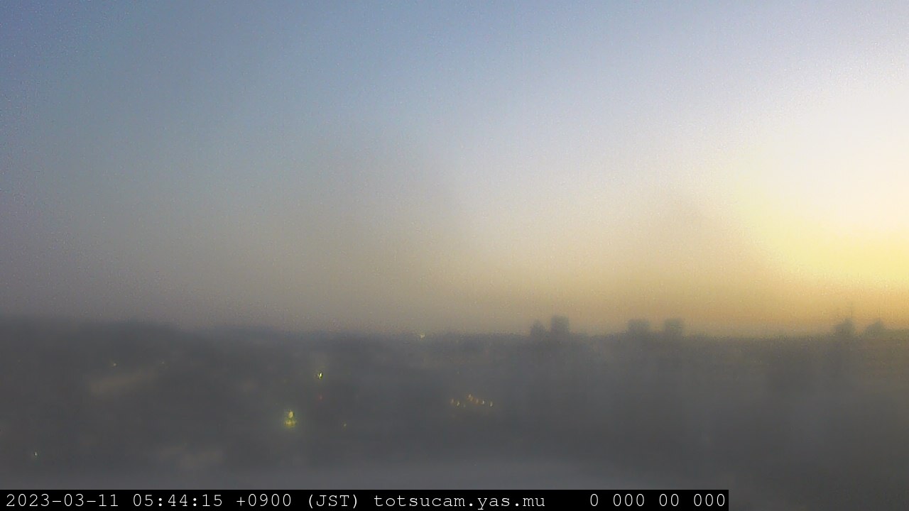 横浜市戸塚駅周辺から 東戸塚方面(北北東)を望む展望カメラの映像です。 左は現在の映像です。 下に並んでいるのは、 7日間に亘る日の出どき、昼間、夕暮れどきの写真(サムネイル)です。 それぞれ、日の出15分前、南中時、日没20分後の写真となっています。 各写真の下にはmpeg形式の動画へのリンクがあります。 それぞれ、日の出、南中、日没の前後1時間の画像です。 右欄にはその日24時間の動画へのリンクがあります。 この7日間以外は日付が一覧表示されています。 日付部分をクリックすると、 その日付から7日分が展開されて表示されます。