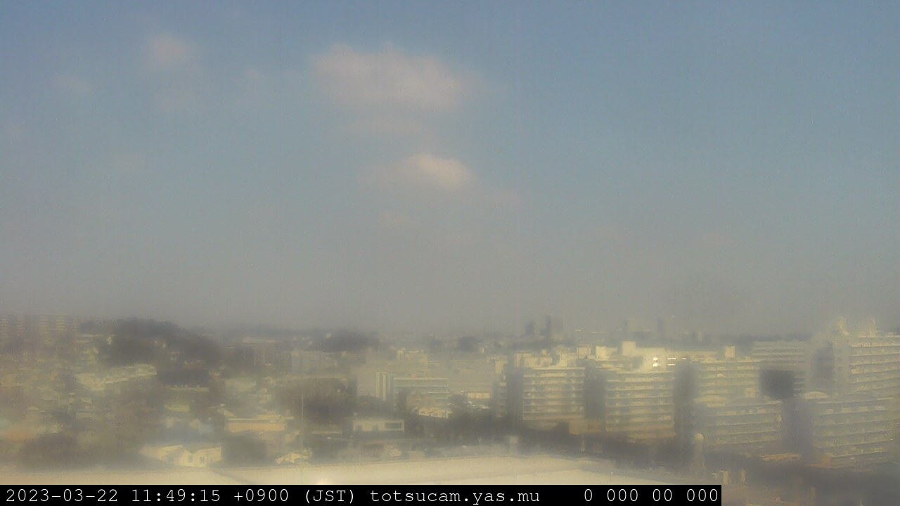 横浜市戸塚駅周辺から 東戸塚方面(北北東)を望む展望カメラの映像です。 左は現在の映像です。 下に並んでいるのは、 7日間に亘る日の出どき、昼間、夕暮れどきの写真(サムネイル)です。 それぞれ、日の出15分前、南中時、日没20分後の写真となっています。 各写真の下にはmpeg形式の動画へのリンクがあります。 それぞれ、日の出、南中、日没の前後1時間の画像です。 右欄にはその日24時間の動画へのリンクがあります。 この7日間以外は日付が一覧表示されています。 日付部分をクリックすると、 その日付から7日分が展開されて表示されます。