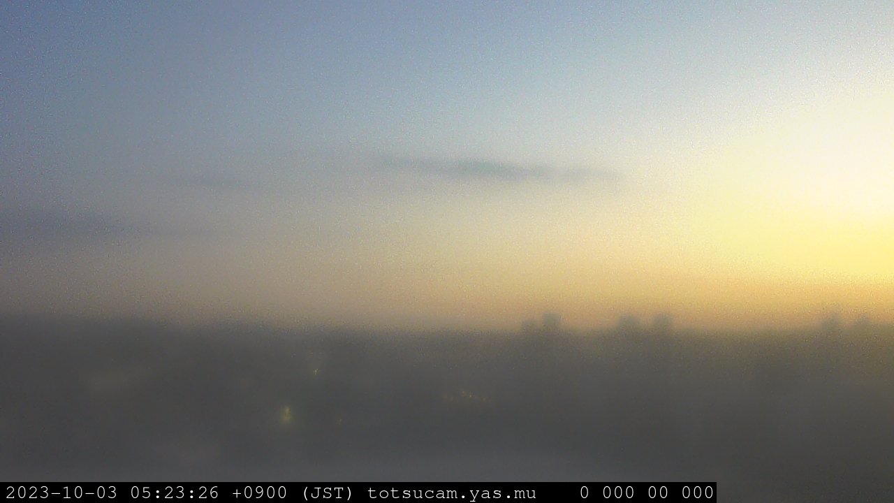 横浜市戸塚駅周辺から 東戸塚方面(北北東)を望む展望カメラの映像です。 左は現在の映像です。 下に並んでいるのは、 7日間に亘る日の出どき、昼間、夕暮れどきの写真(サムネイル)です。 それぞれ、日の出15分前、南中時、日没20分後の写真となっています。 各写真の下にはmpeg形式の動画へのリンクがあります。 それぞれ、日の出、南中、日没の前後1時間の画像です。 右欄にはその日24時間の動画へのリンクがあります。 この7日間以外は日付が一覧表示されています。 日付部分をクリックすると、 その日付から7日分が展開されて表示されます。