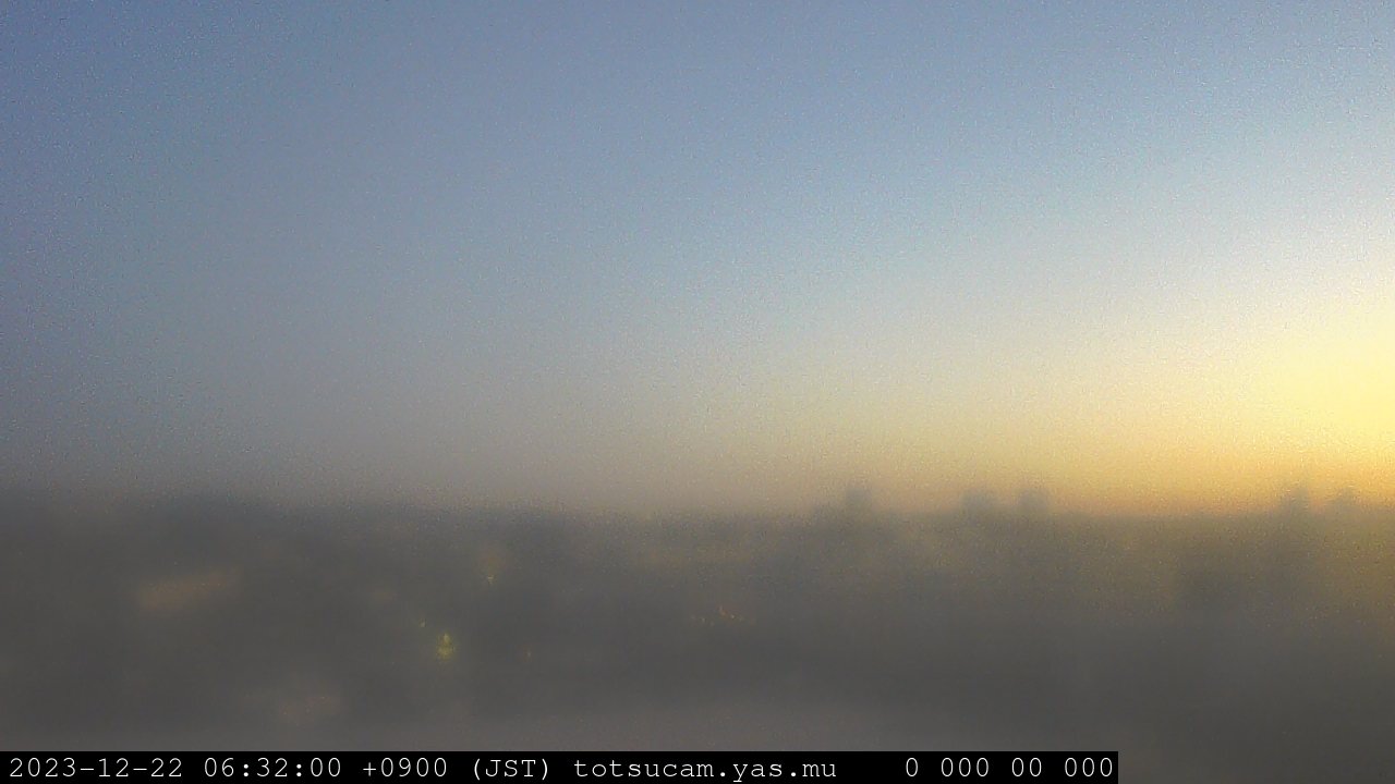 横浜市戸塚駅周辺から 東戸塚方面(北北東)を望む展望カメラの映像です。 左は現在の映像です。 下に並んでいるのは、 7日間に亘る日の出どき、昼間、夕暮れどきの写真(サムネイル)です。 それぞれ、日の出15分前、南中時、日没20分後の写真となっています。 各写真の下にはmpeg形式の動画へのリンクがあります。 それぞれ、日の出、南中、日没の前後1時間の画像です。 右欄にはその日24時間の動画へのリンクがあります。 この7日間以外は日付が一覧表示されています。 日付部分をクリックすると、 その日付から7日分が展開されて表示されます。
