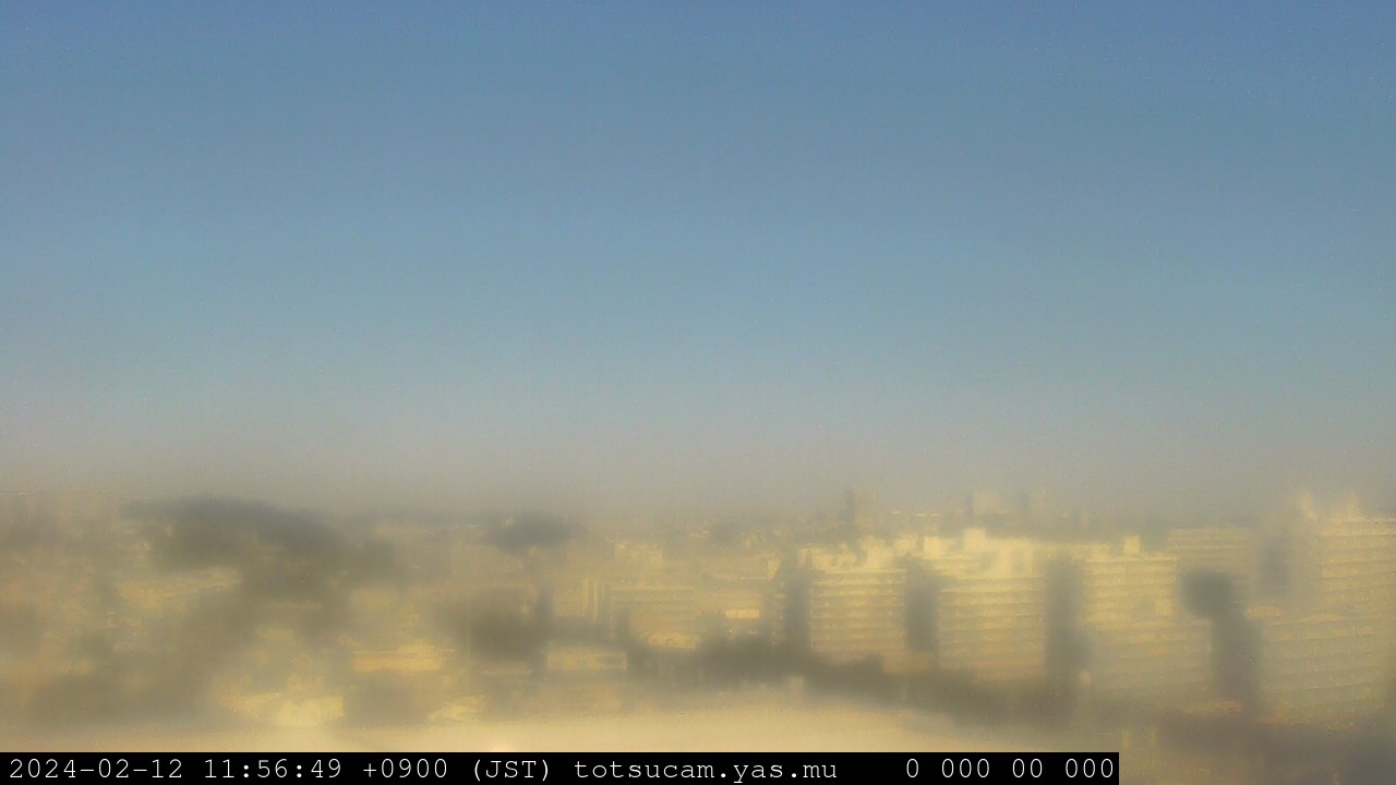 横浜市戸塚駅周辺から 東戸塚方面(北北東)を望む展望カメラの映像です。 左は現在の映像です。 下に並んでいるのは、 7日間に亘る日の出どき、昼間、夕暮れどきの写真(サムネイル)です。 それぞれ、日の出15分前、南中時、日没20分後の写真となっています。 各写真の下にはmpeg形式の動画へのリンクがあります。 それぞれ、日の出、南中、日没の前後1時間の画像です。 右欄にはその日24時間の動画へのリンクがあります。 この7日間以外は日付が一覧表示されています。 日付部分をクリックすると、 その日付から7日分が展開されて表示されます。