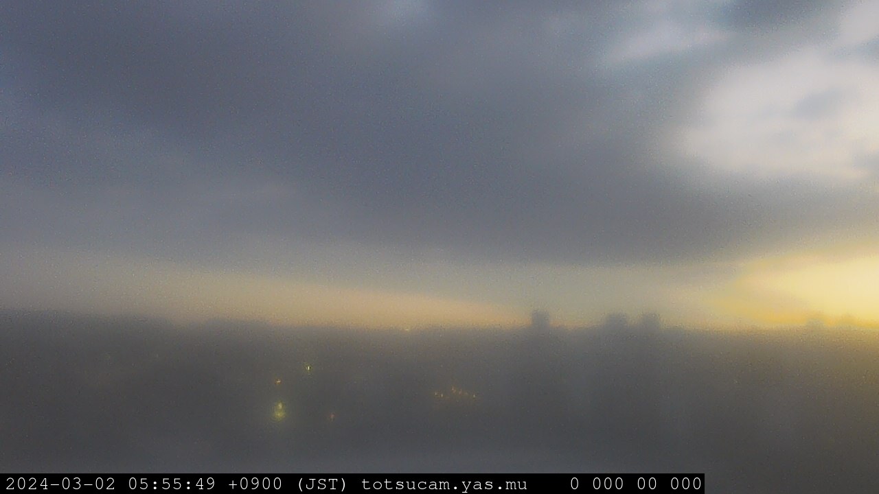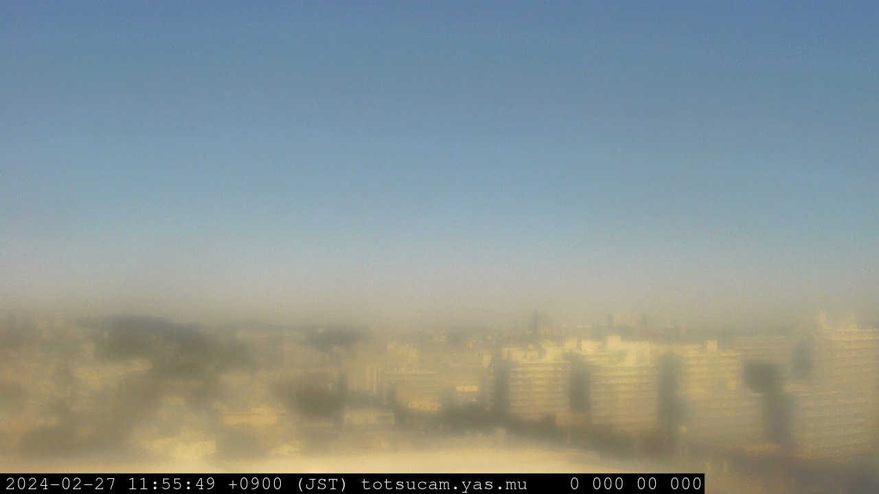 横浜市戸塚駅周辺から 東戸塚方面(北北東)を望む展望カメラの映像です。 左は現在の映像です。 下に並んでいるのは、 7日間に亘る日の出どき、昼間、夕暮れどきの写真(サムネイル)です。 それぞれ、日の出15分前、南中時、日没20分後の写真となっています。 各写真の下にはmpeg形式の動画へのリンクがあります。 それぞれ、日の出、南中、日没の前後1時間の画像です。 右欄にはその日24時間の動画へのリンクがあります。 この7日間以外は日付が一覧表示されています。 日付部分をクリックすると、 その日付から7日分が展開されて表示されます。